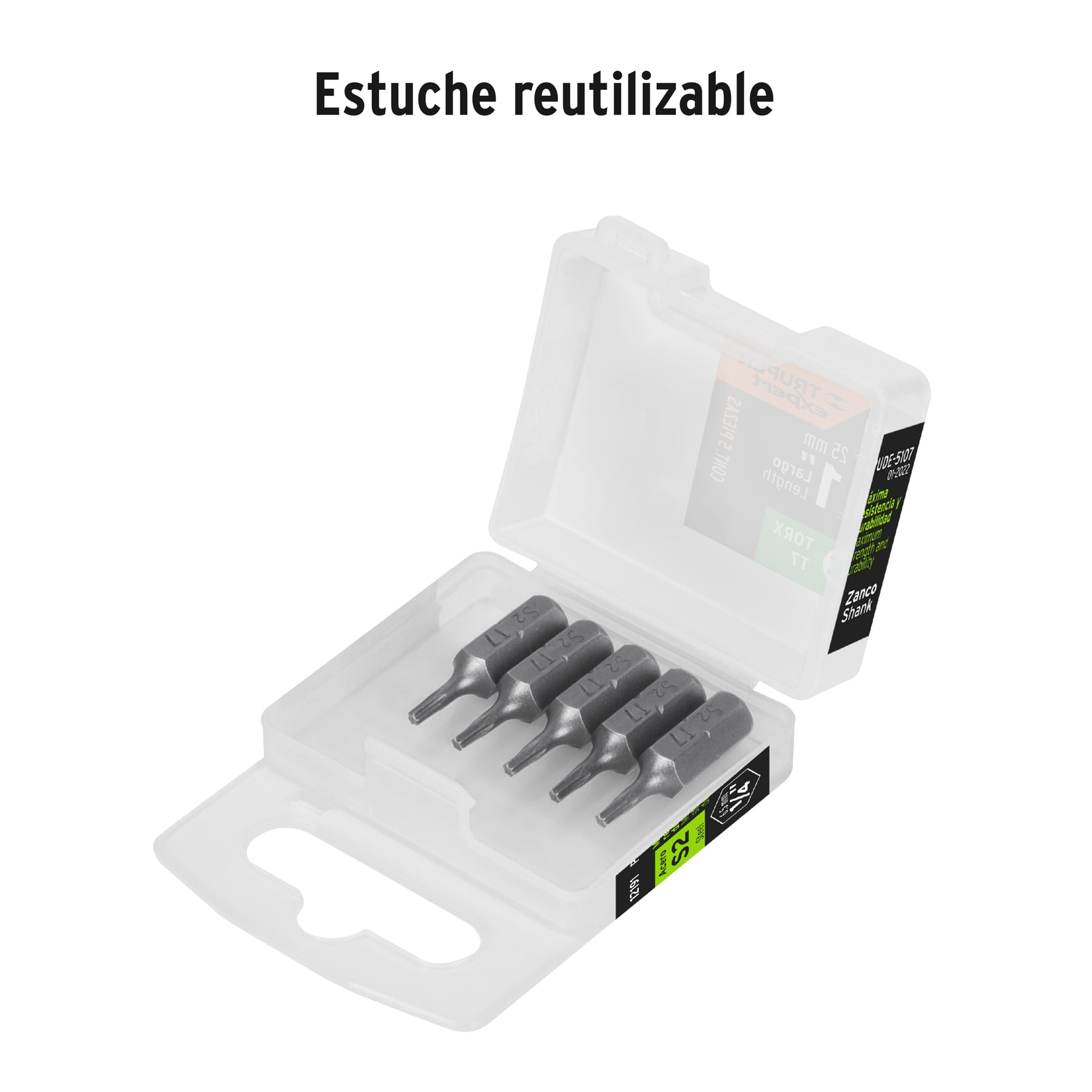 Estuche con 5 puntas torx T7 largo 1′, Truper Expert