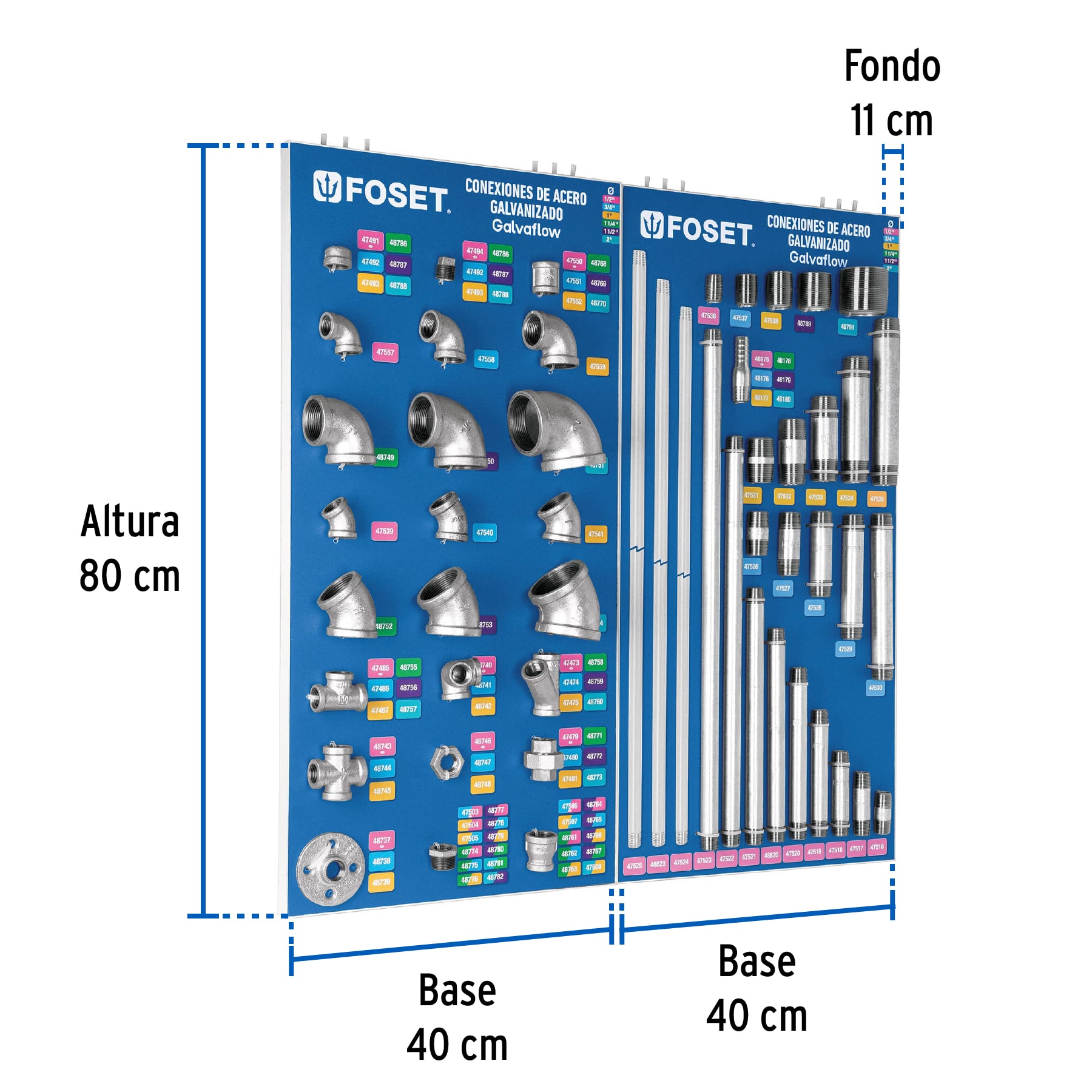 Exhibidor con conexiones de acero galvanizado, Foset