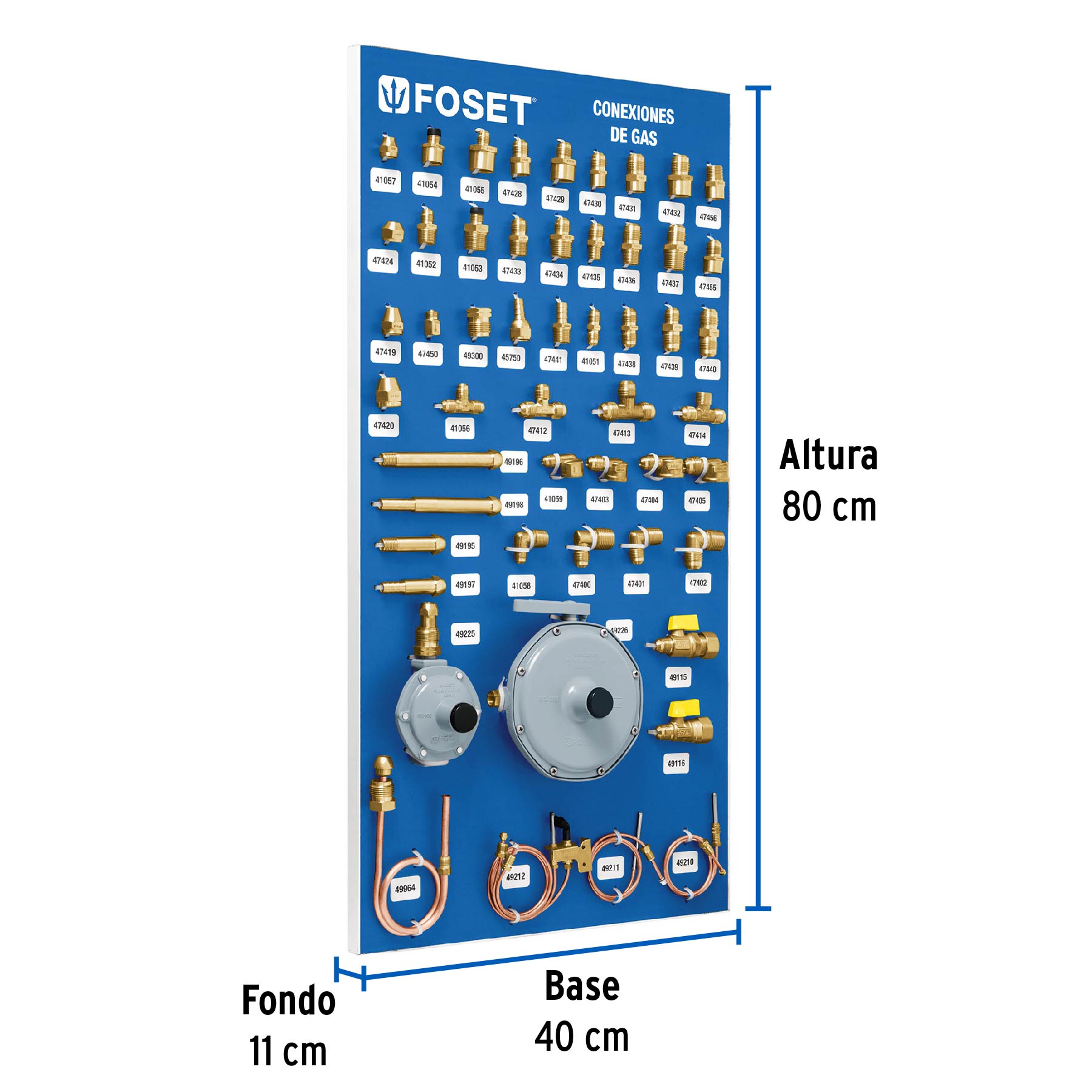 Exhibidor con conexiones de latón para gas, Foset