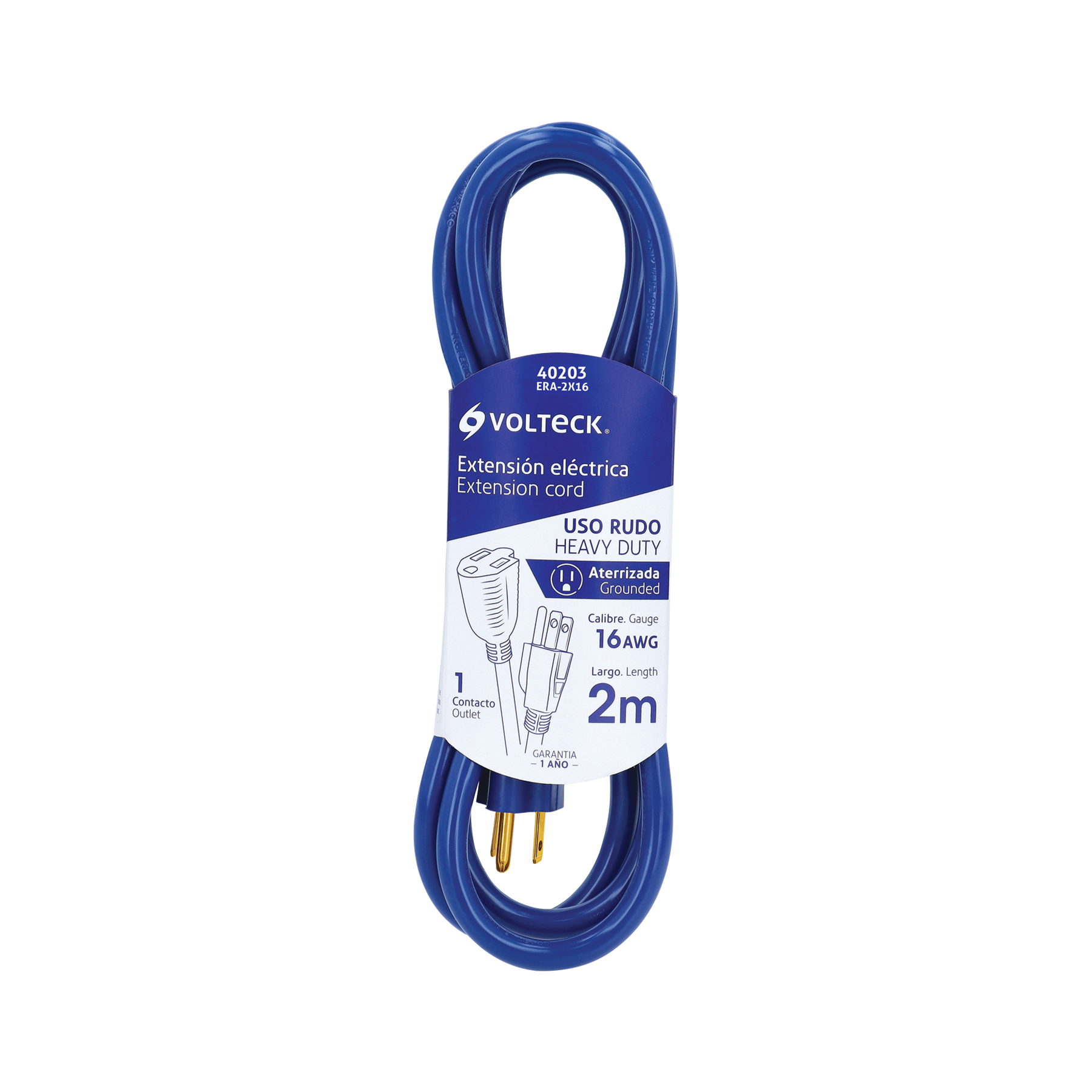Extensión de uso rudo aterrizada 2 m calibre 16, Volteck