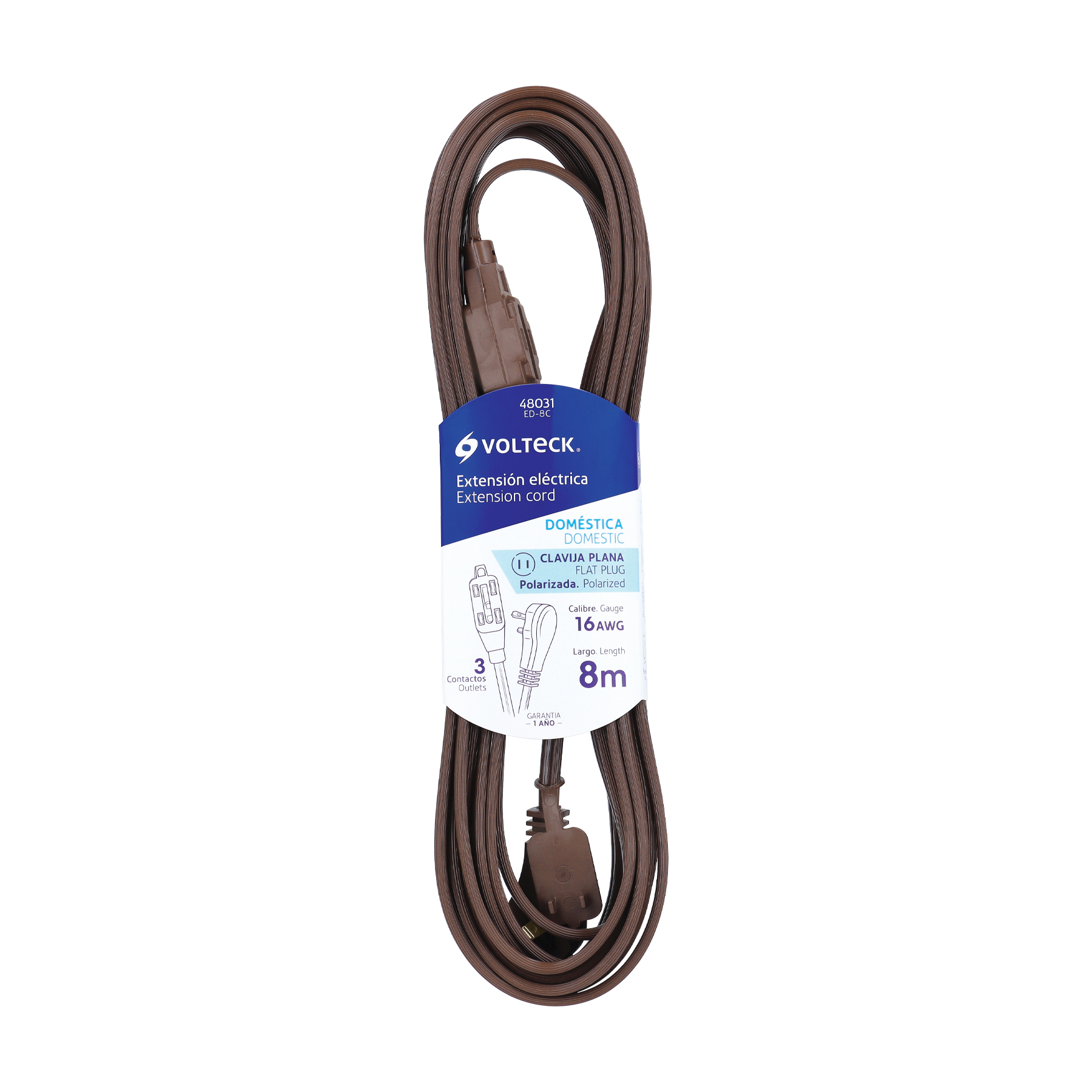 Extensión eléctrica doméstica 8 m clavija plana, café