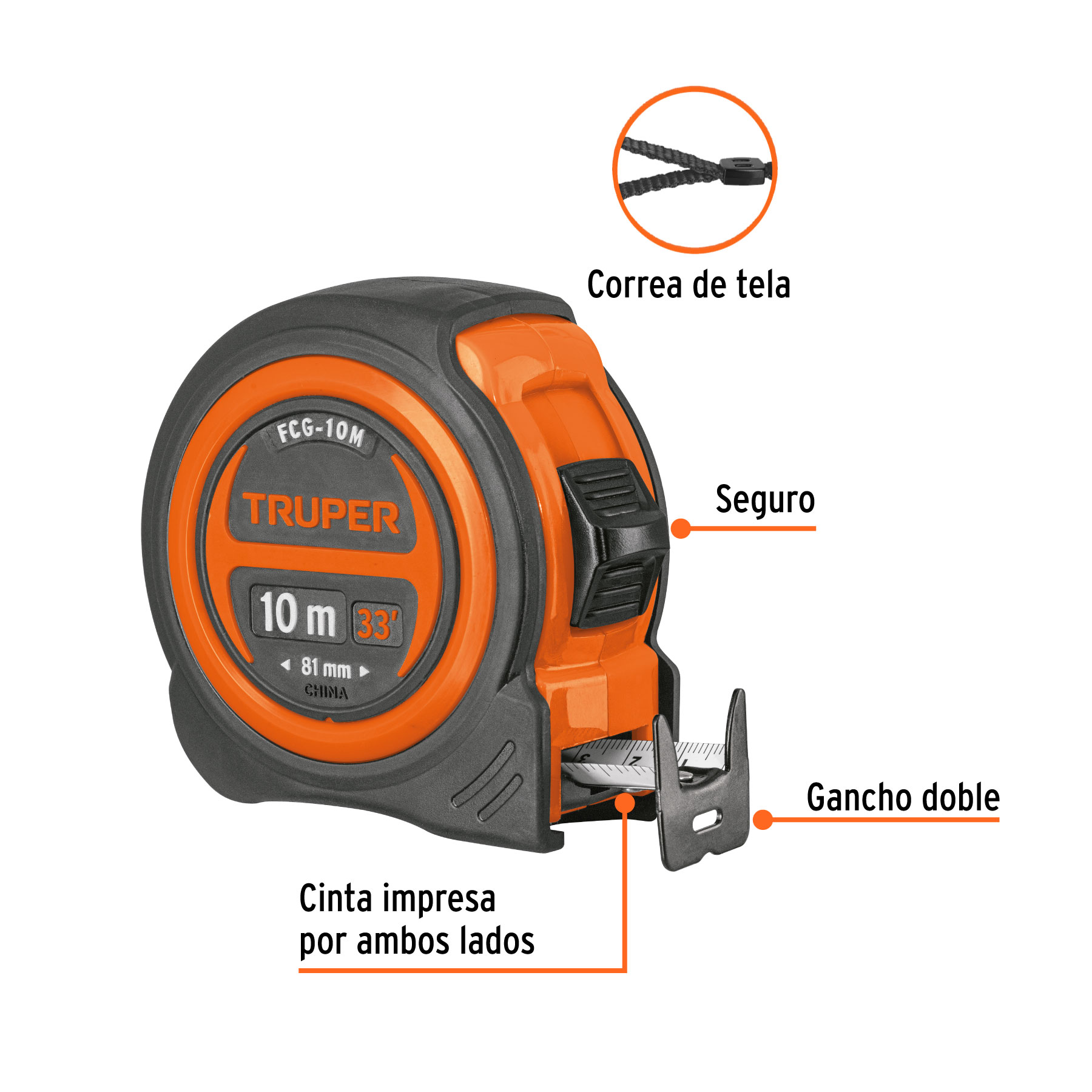 Flexómetro compacto contra impactos 10 m cinta 25 mm, TRUPER