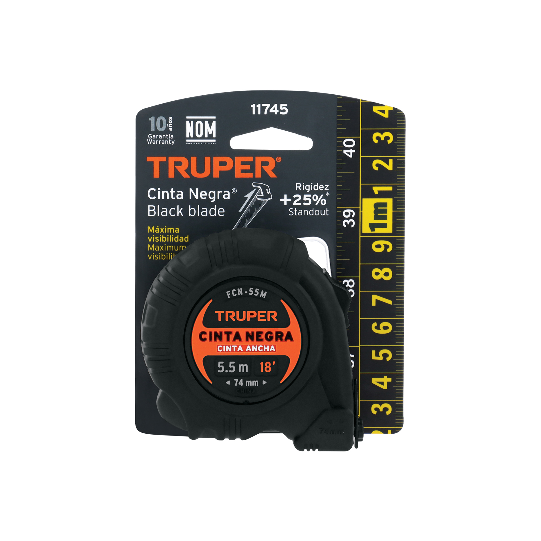 Flexómetro contra impactos 5.5 m, Cinta Negra 25 mm, Truper