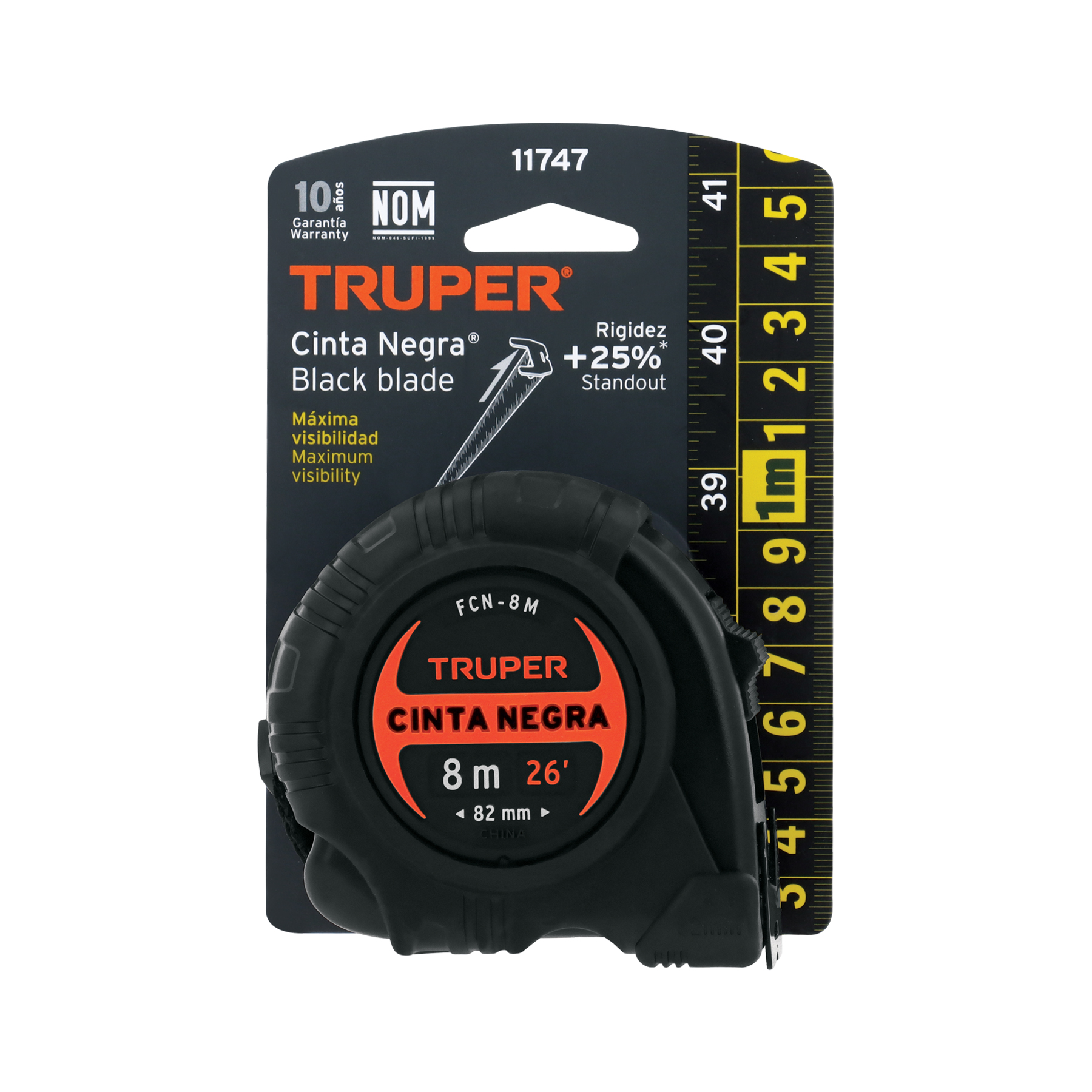 Flexómetro contra impactos 8 m, Cinta Negra 25 mm, Truper