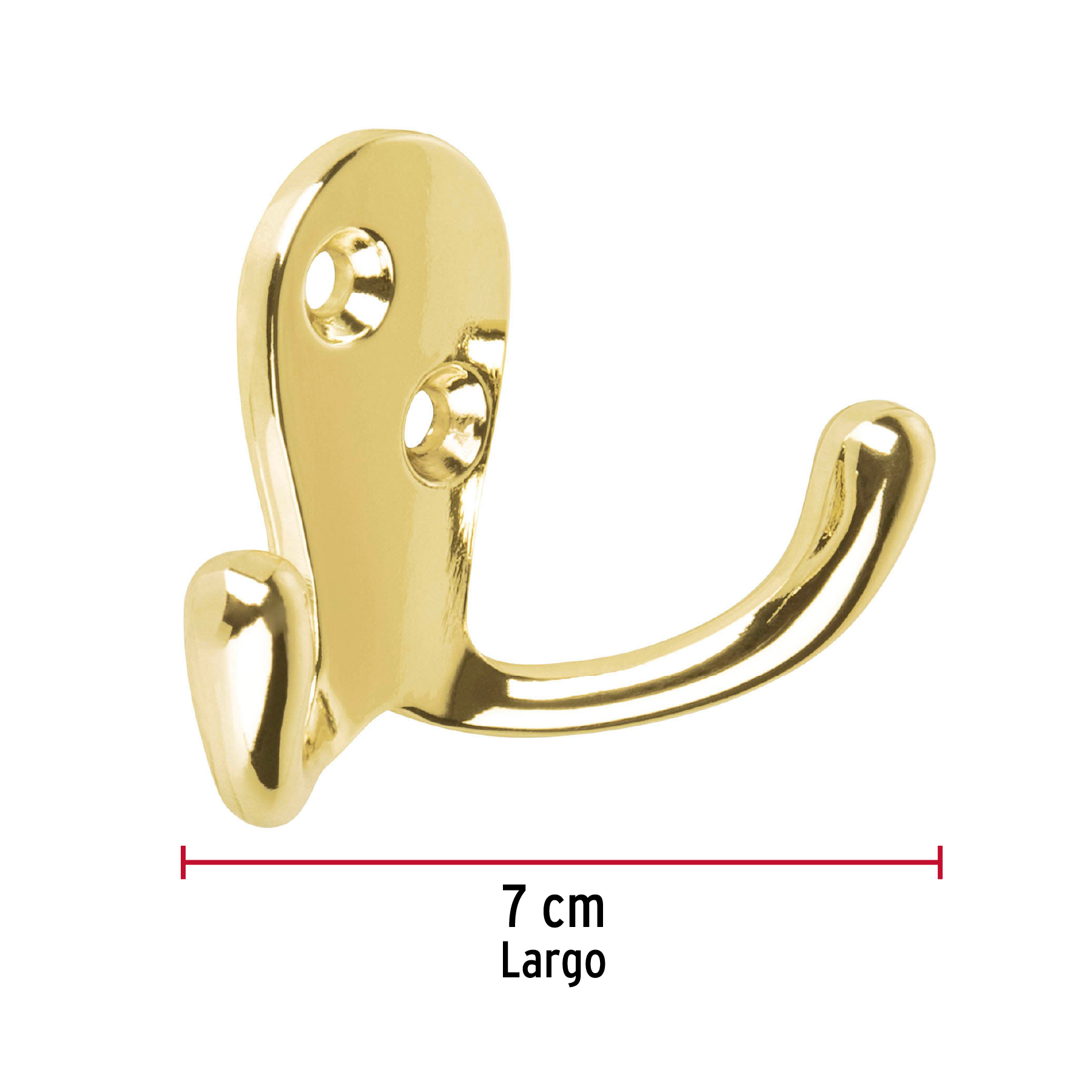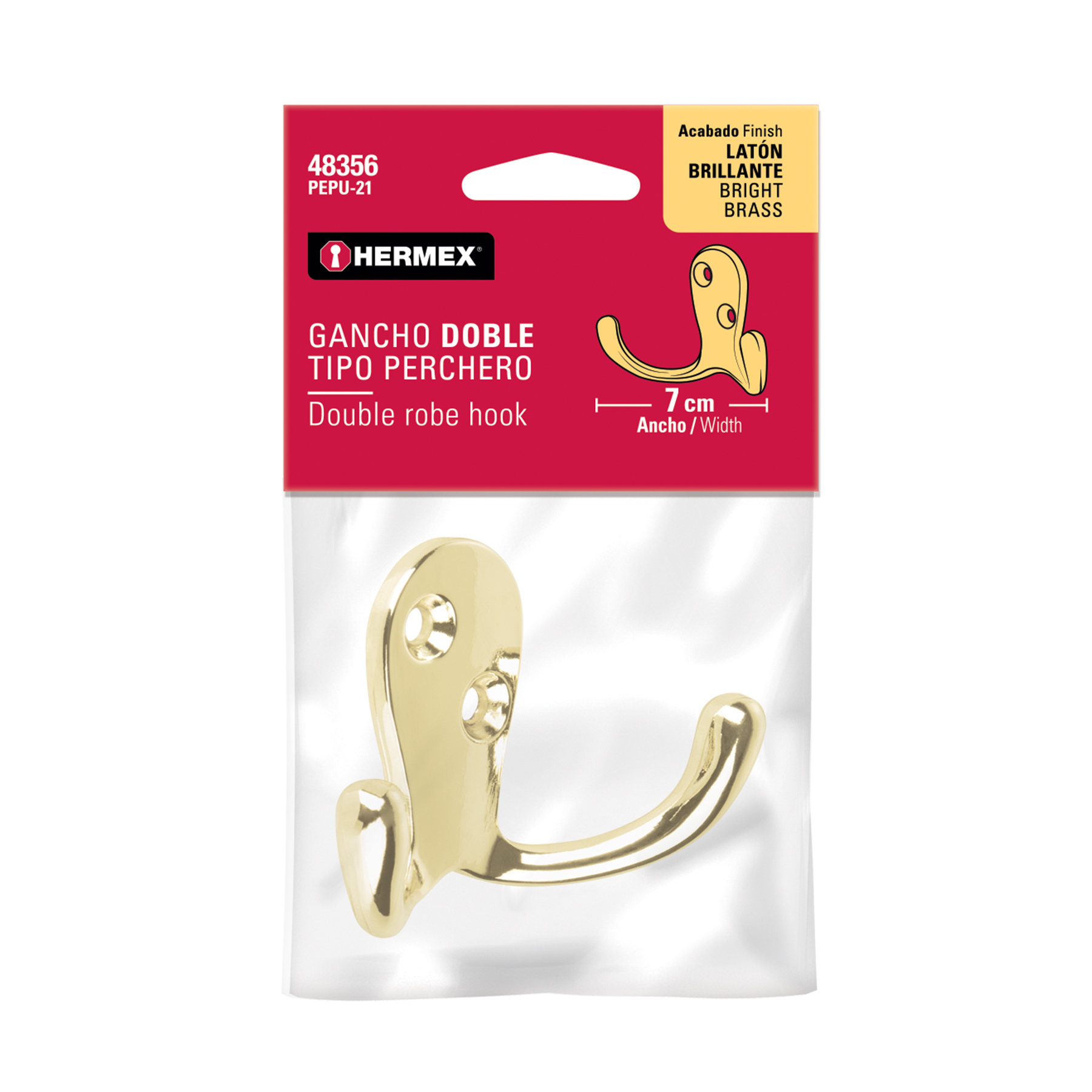 Gancho doble tipo perchero, latón brillante, HERMEX