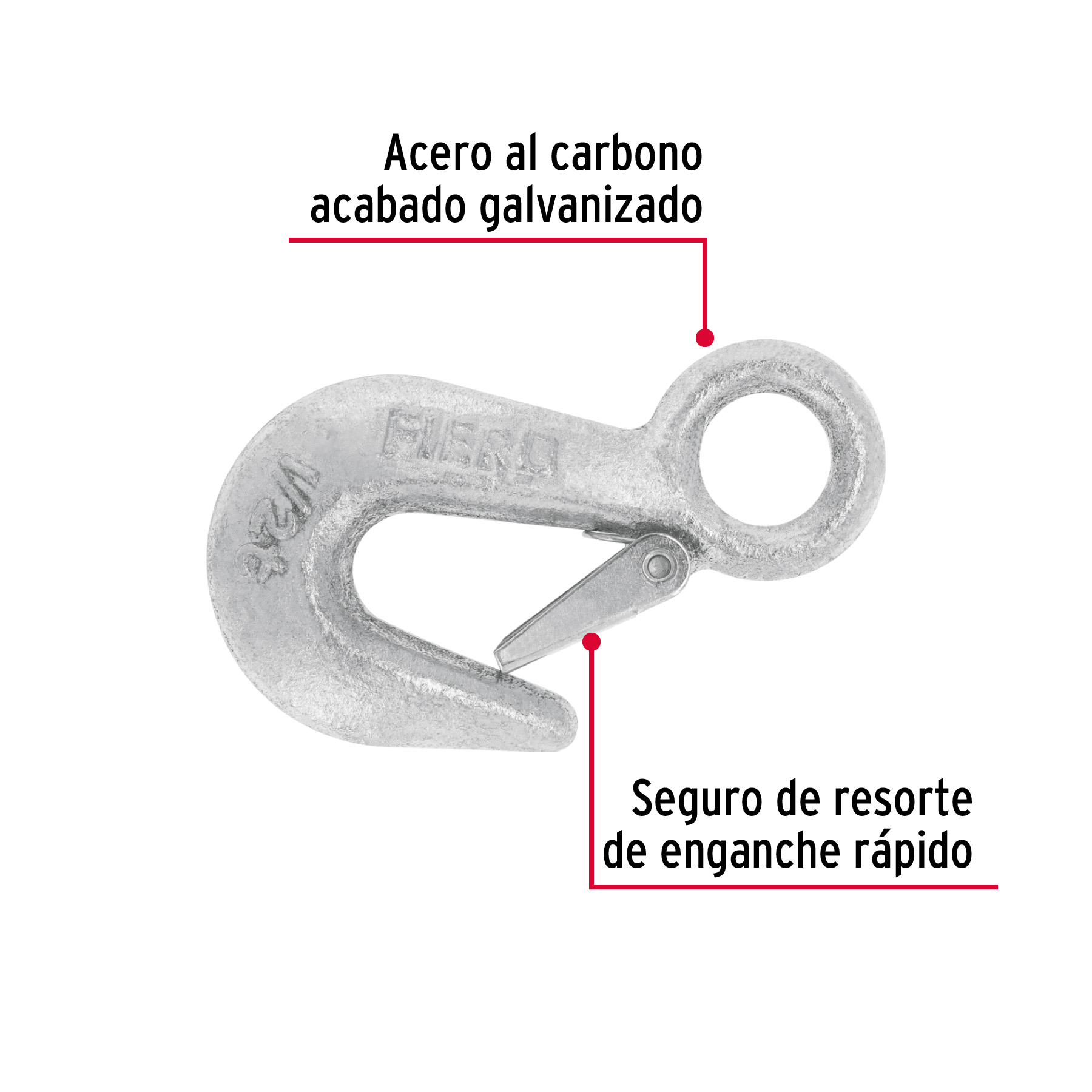 Gancho eslinga de acero forjado 3/4′, carga 500 kg, FIERO