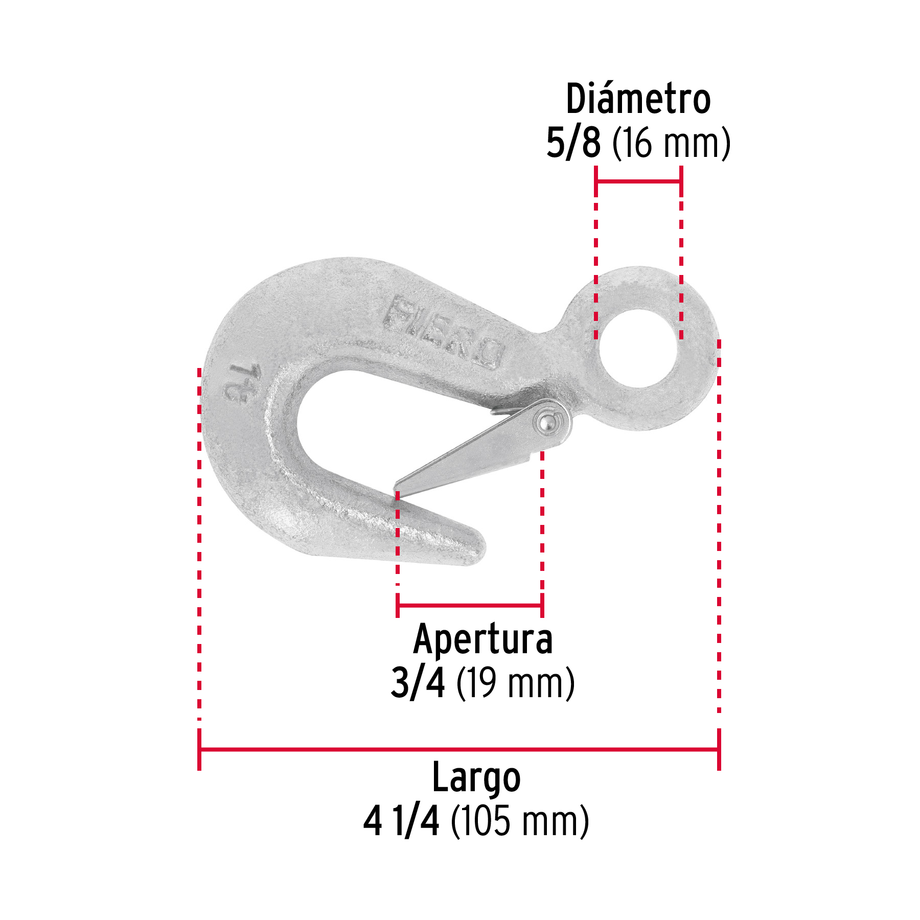 Gancho eslinga de acero forjado 5/8′, carga 1000 kg, FIERO