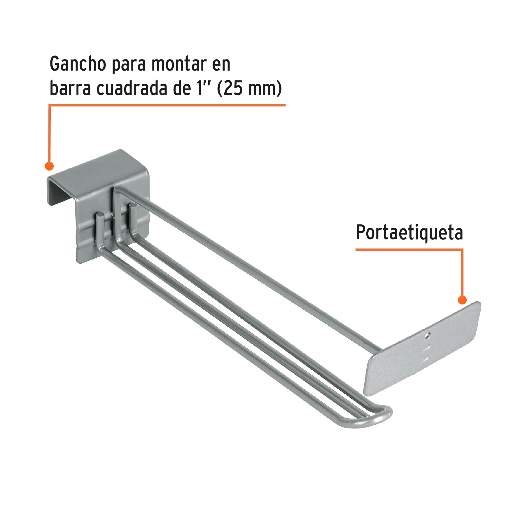 Gancho recto reforzado de 10′ con portaetiqueta, Truper