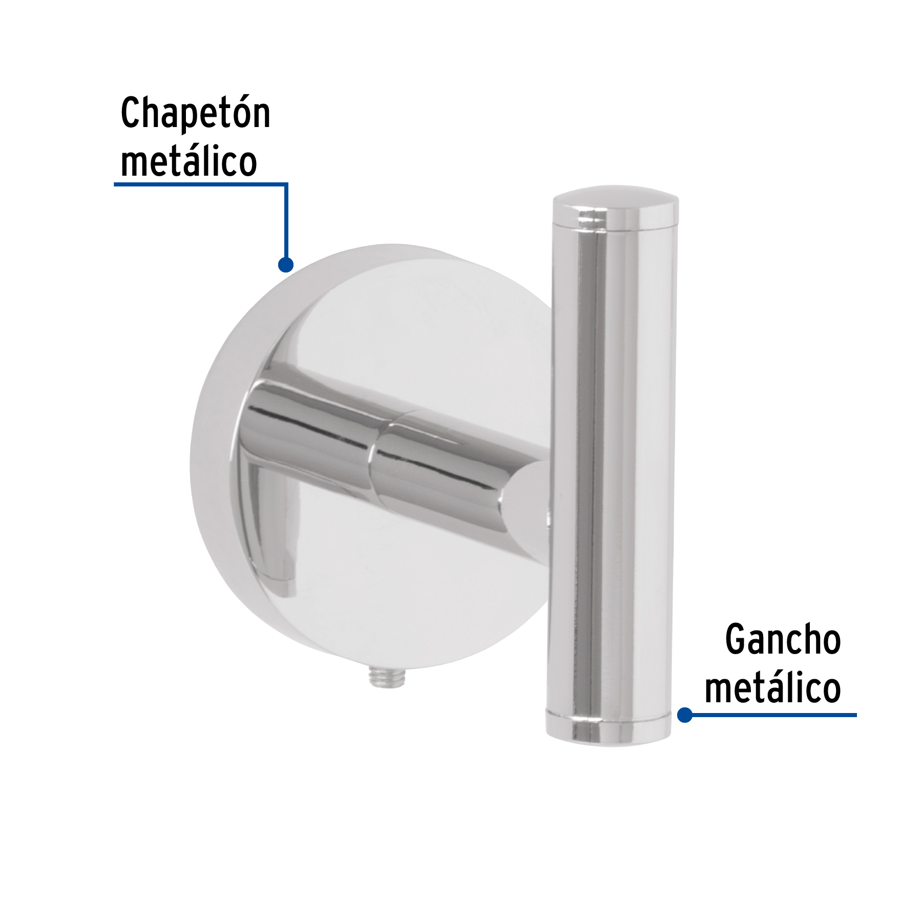 Gancho sencillo metálico acabado cromo, Foset Túbig