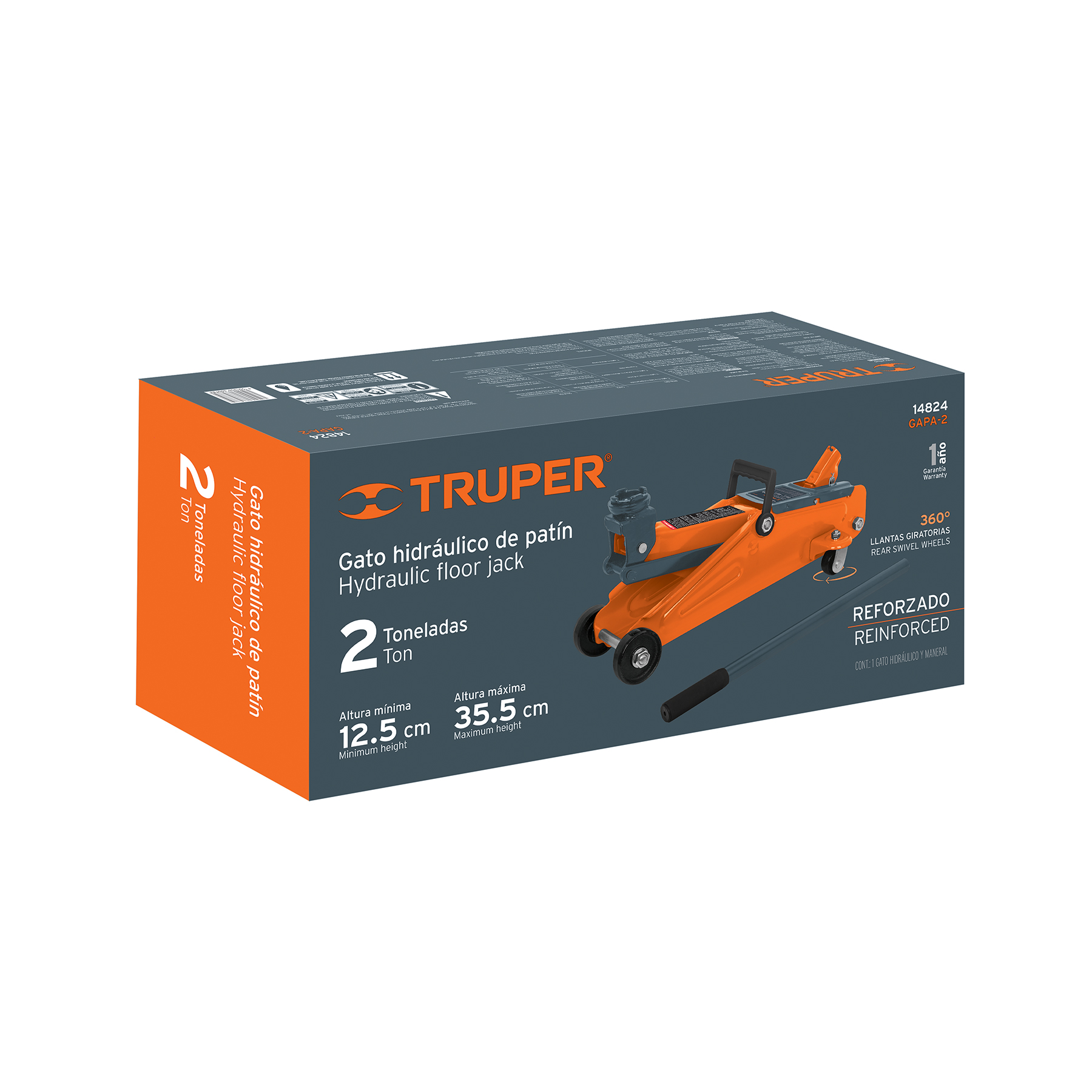 Gato hidráulico de patín, 2t, 50 movimientos, Truper