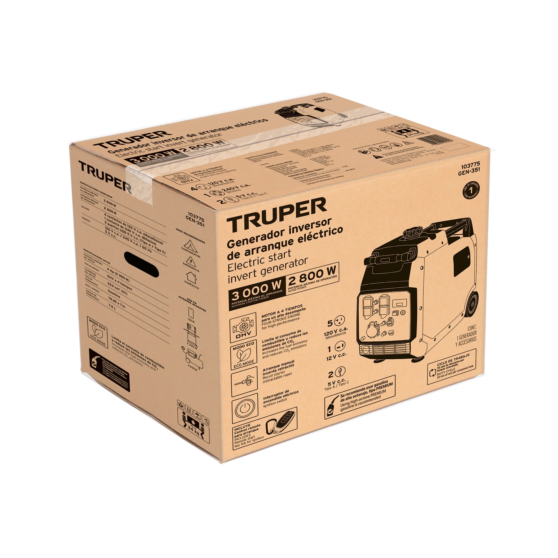 Generador inversor silencioso 3 kW, encendido electrónico
