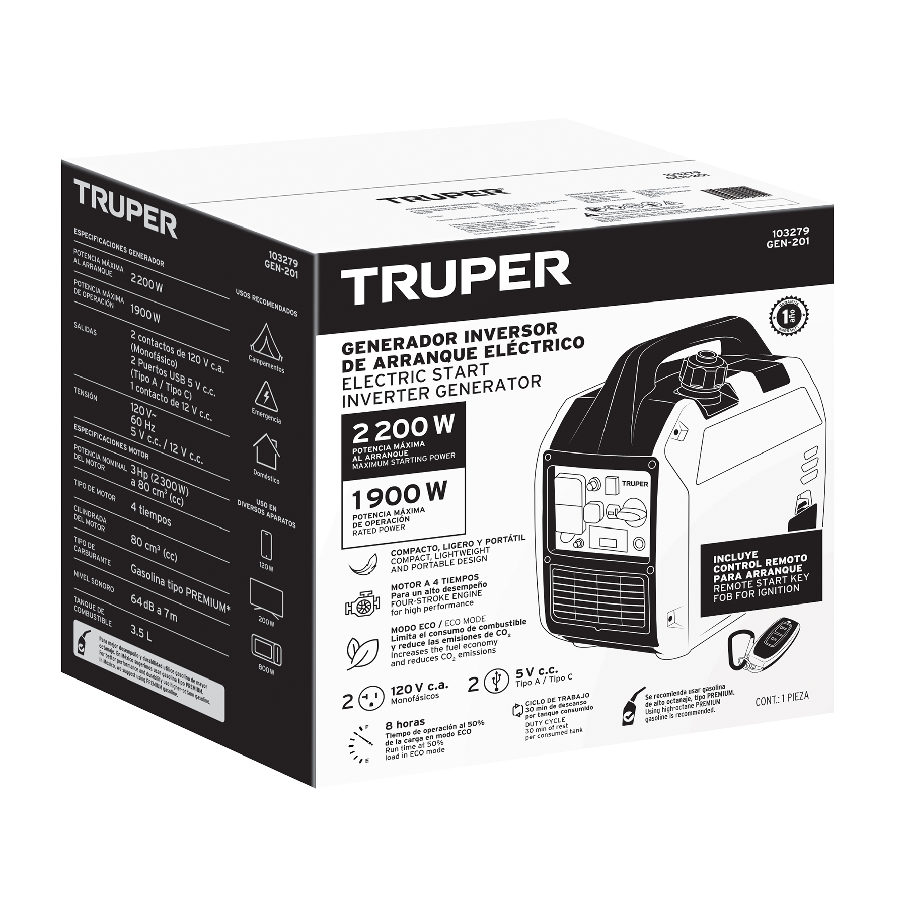 Generador silencioso inverter 2.2kW, 80 cc, enc. electrónico