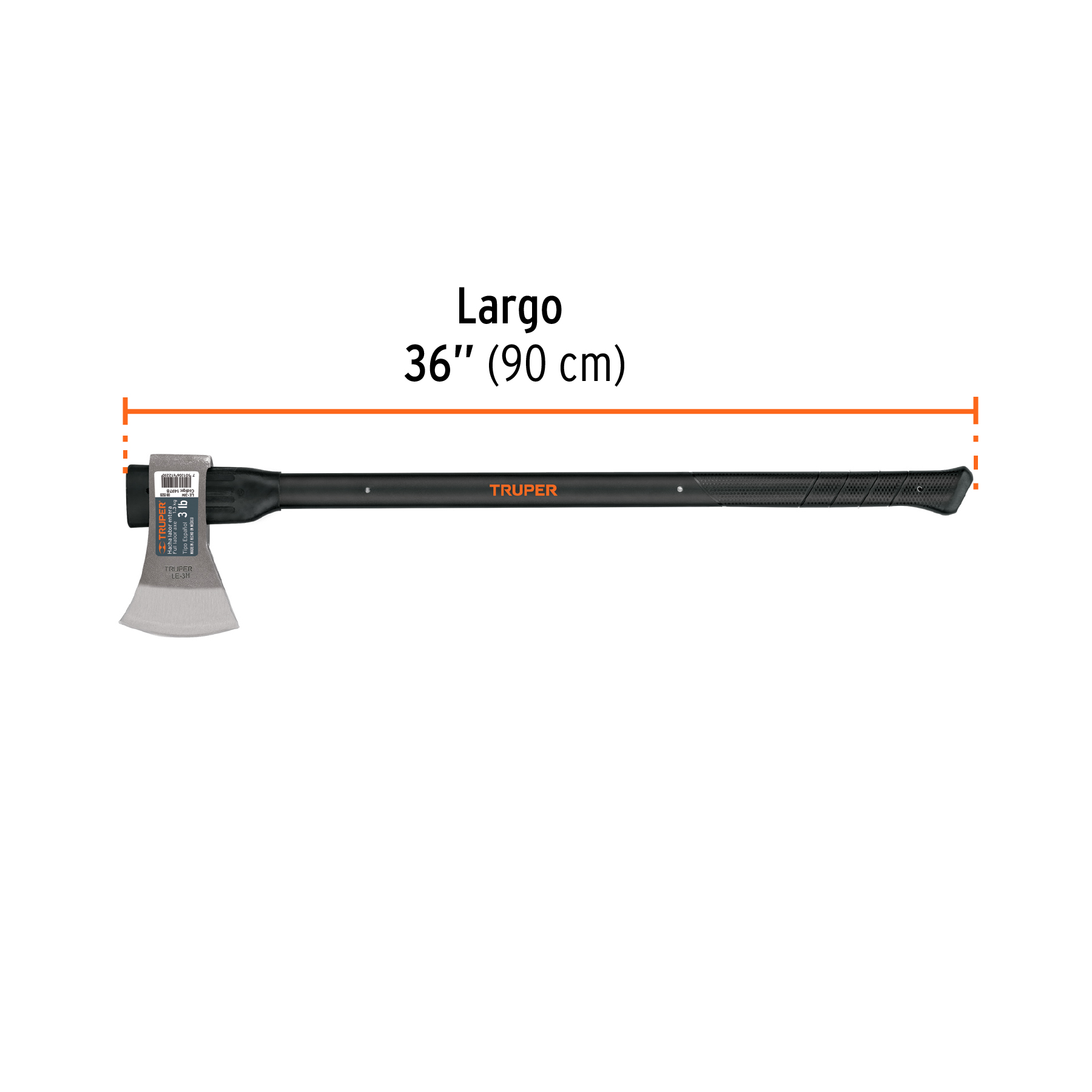 Hacha labor entera 3 lb, mango de fibra de vidrio 36′,TRUPER
