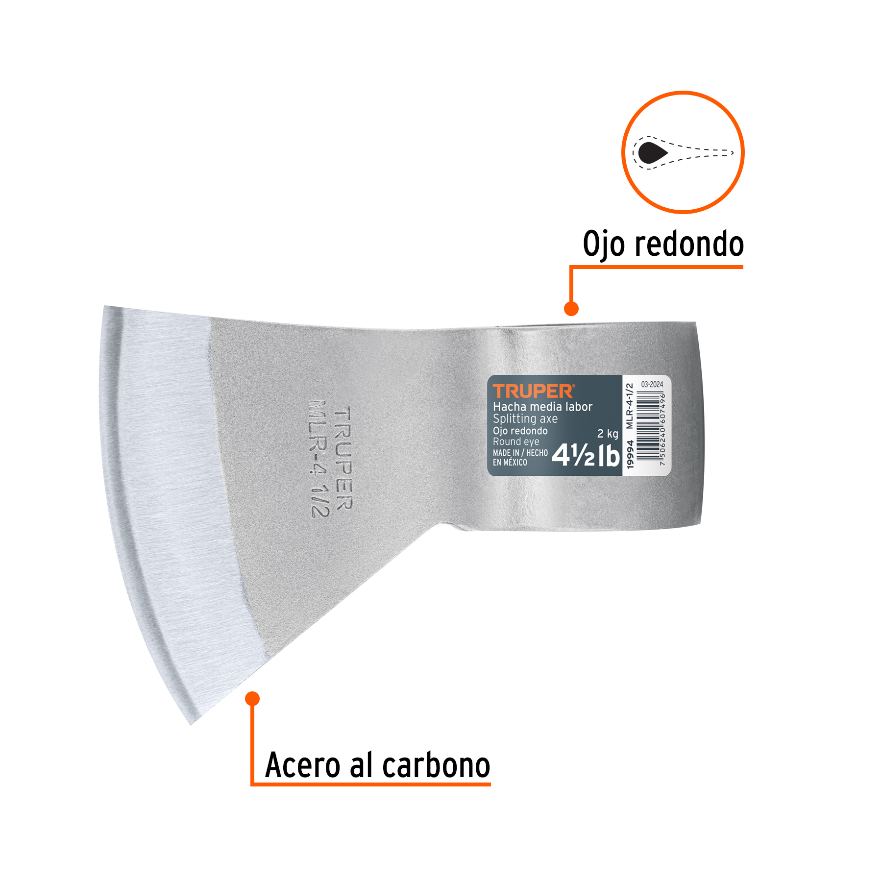 Hacha media labor ojo redondo 4-1/2 lb sin mango, TRUPER