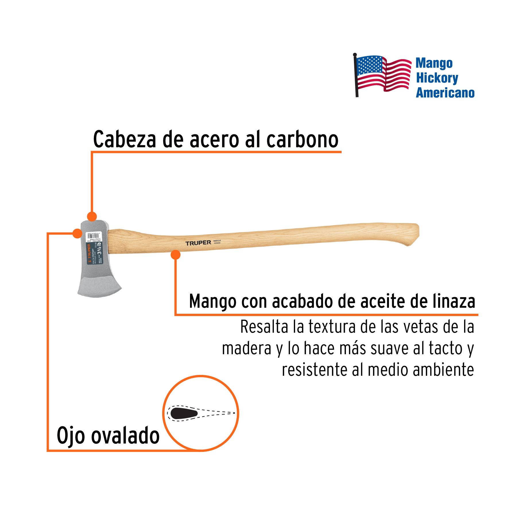 Hacha Michigan 3-1/2 lb, mango de hickory 34′, Truper