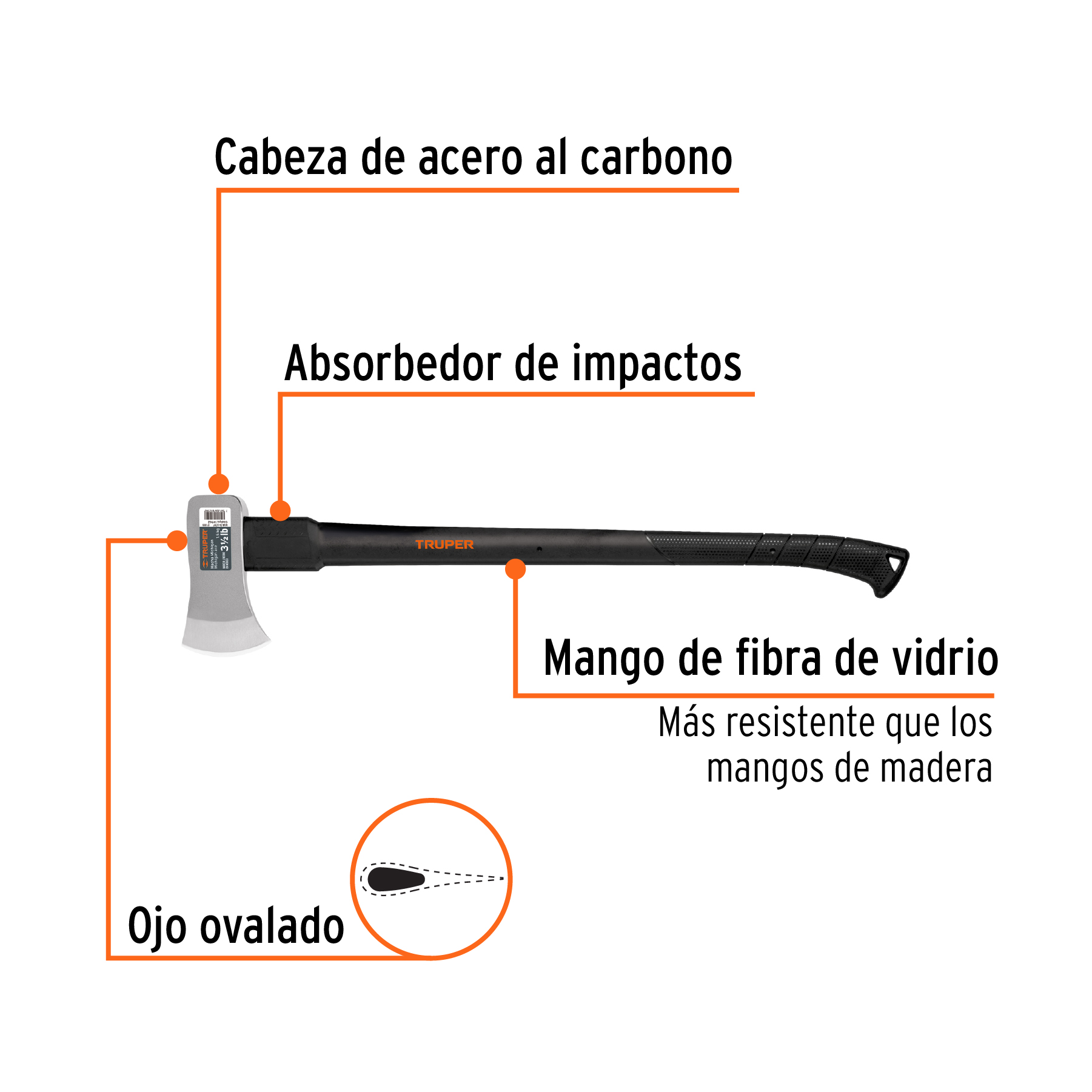 Hacha Michigan 3-1/2 lb, mango fibra de vidrio 34′, Truper