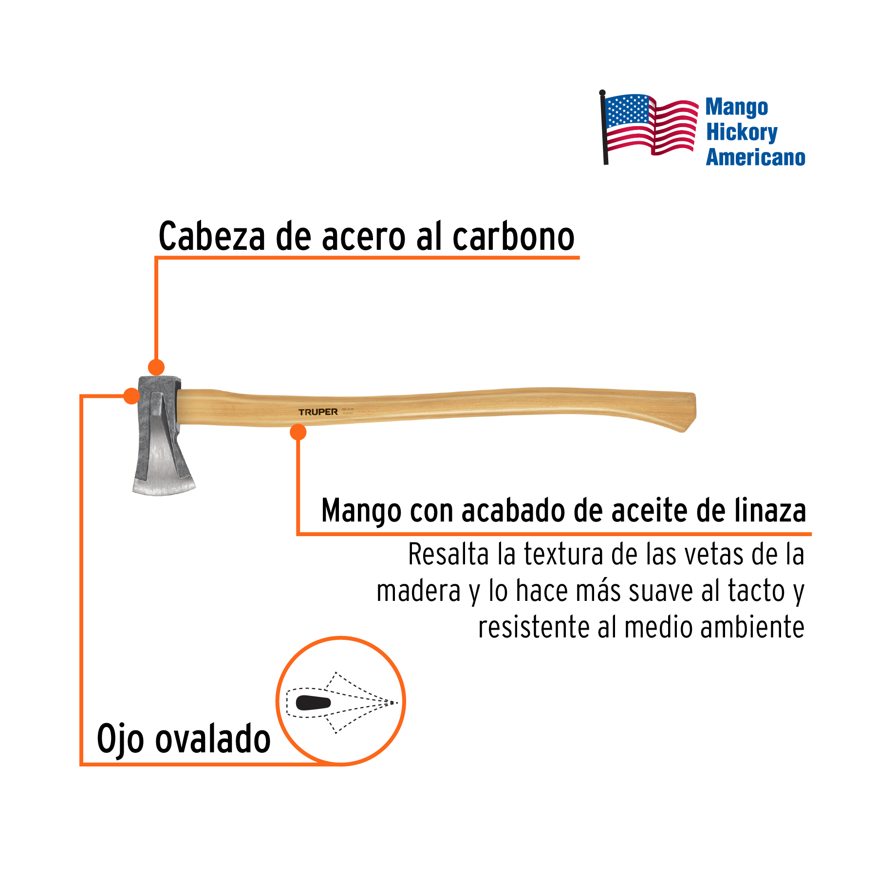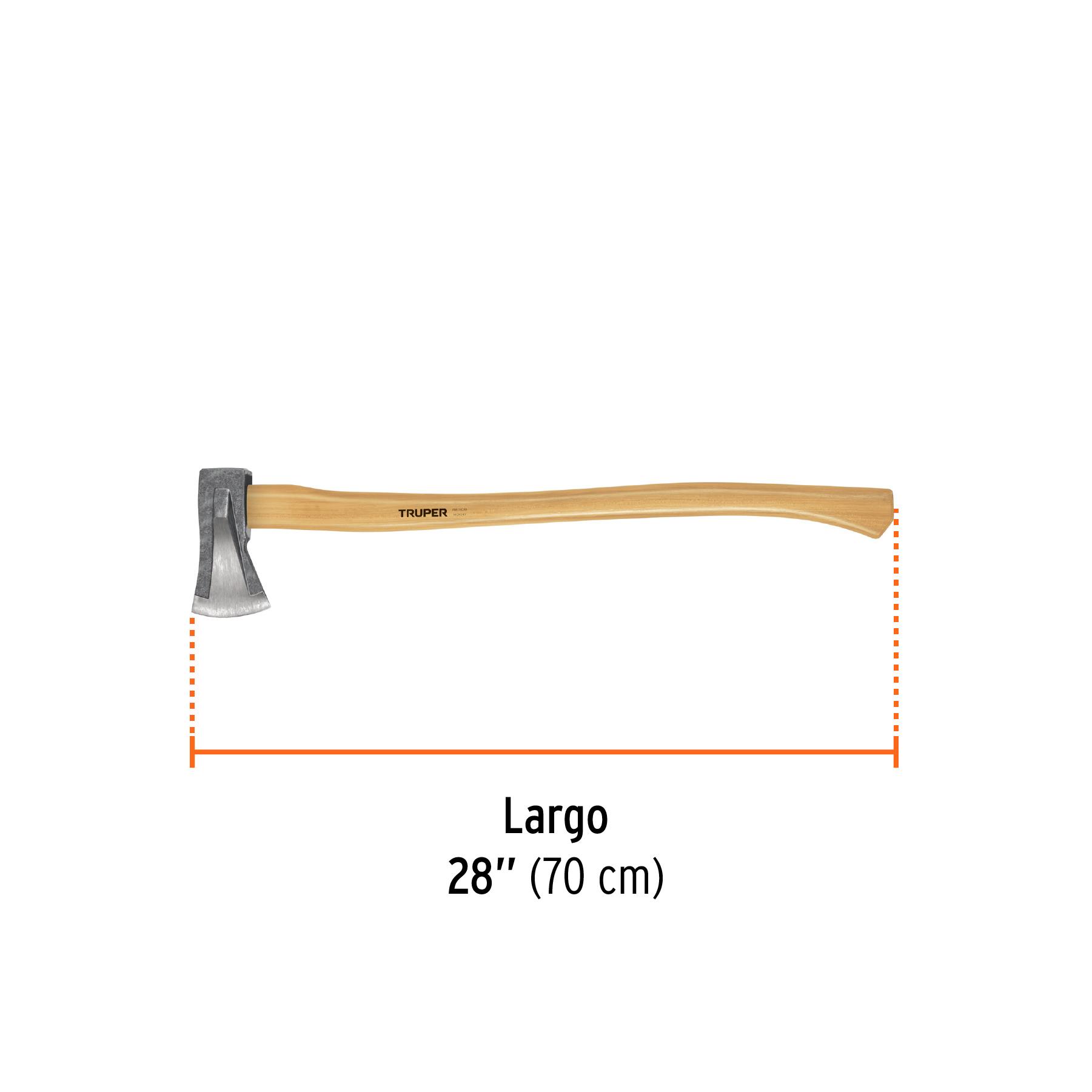 Hacha para rajar madera 2-1/4 lb, mango hickory 28′, Truper