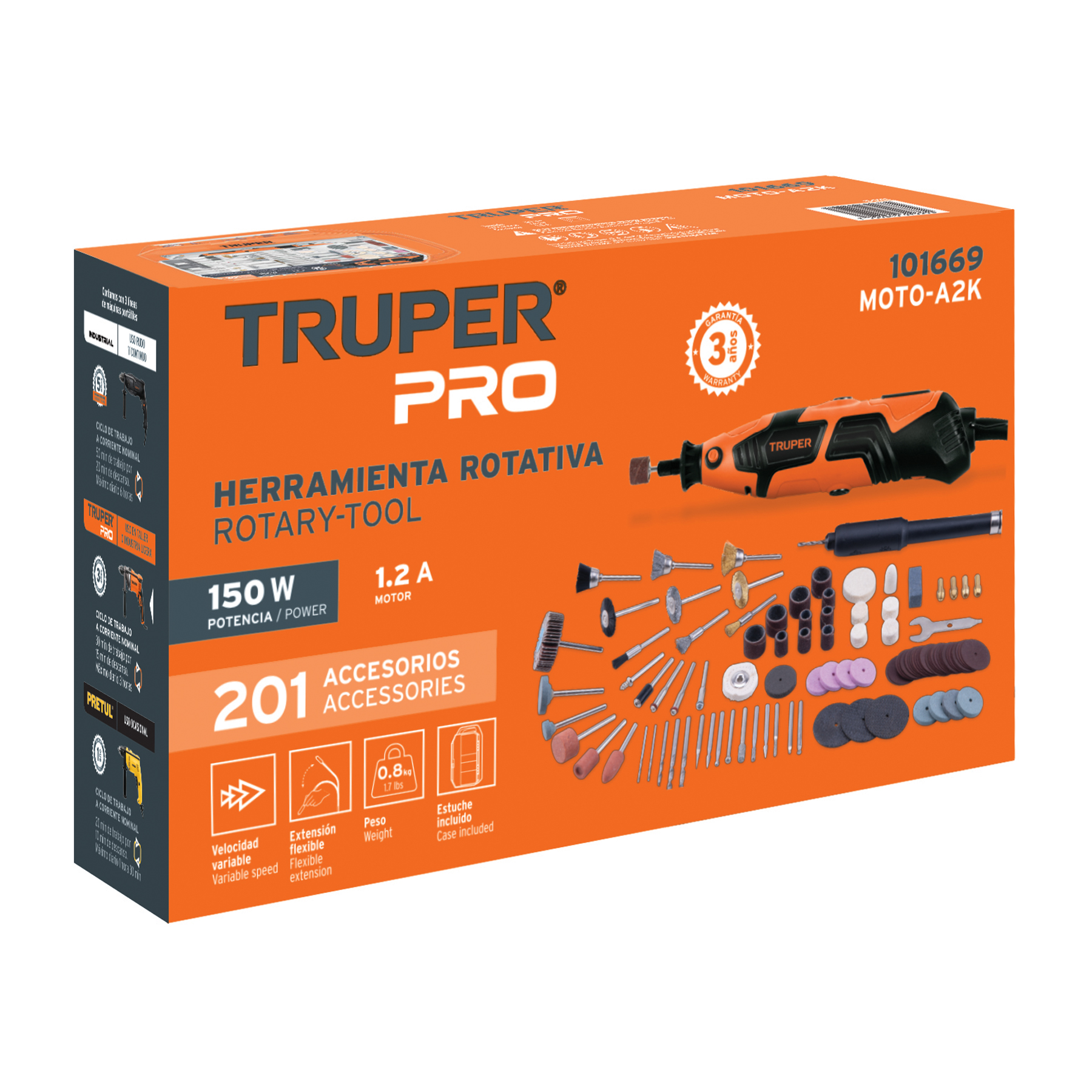 Herramienta rotativa 150W con 201 accesorios, TRUPER PRO