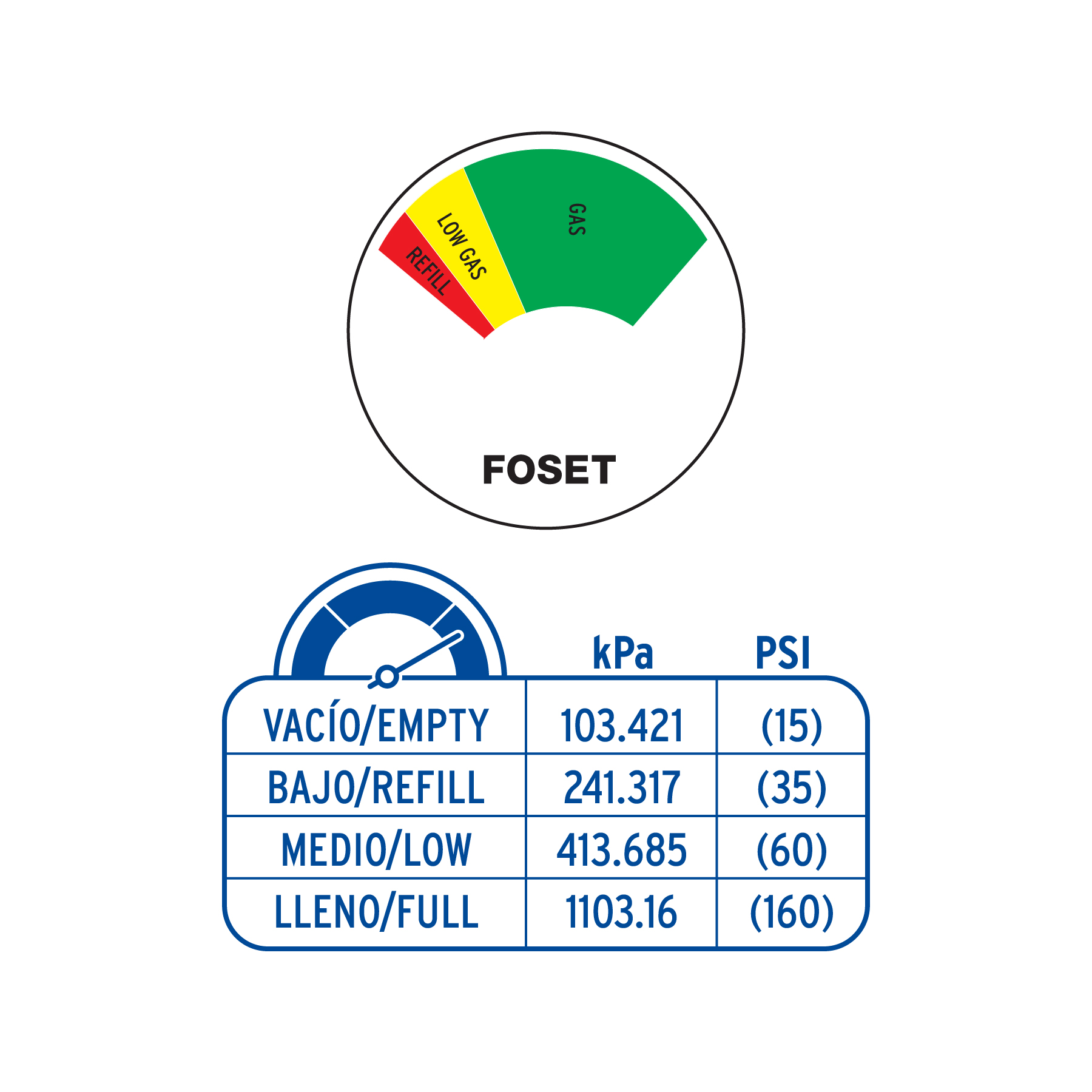 Indicador de nivel de llenado para cilindro de gas, Foset