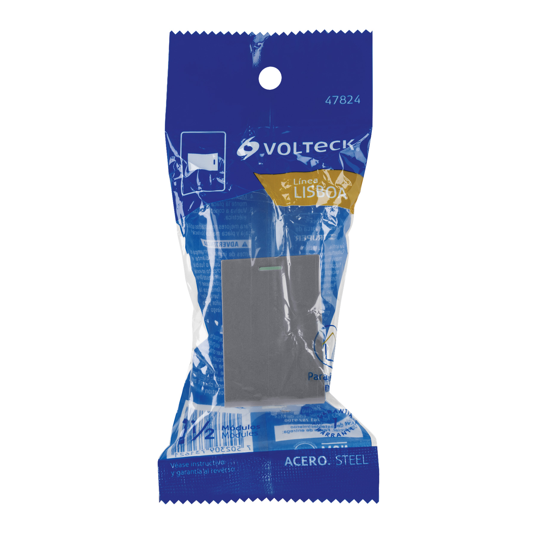 Interruptor 3 vías acero inox de 1.5 módulos, línea Lisboa