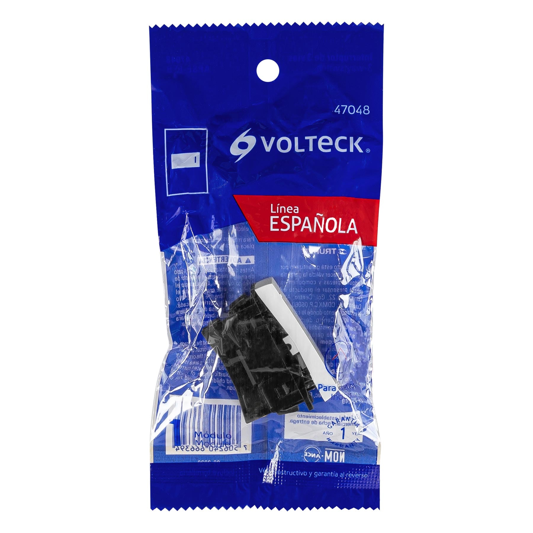 Interruptor de 3 vías, 1 módulo, línea Española,color blanco