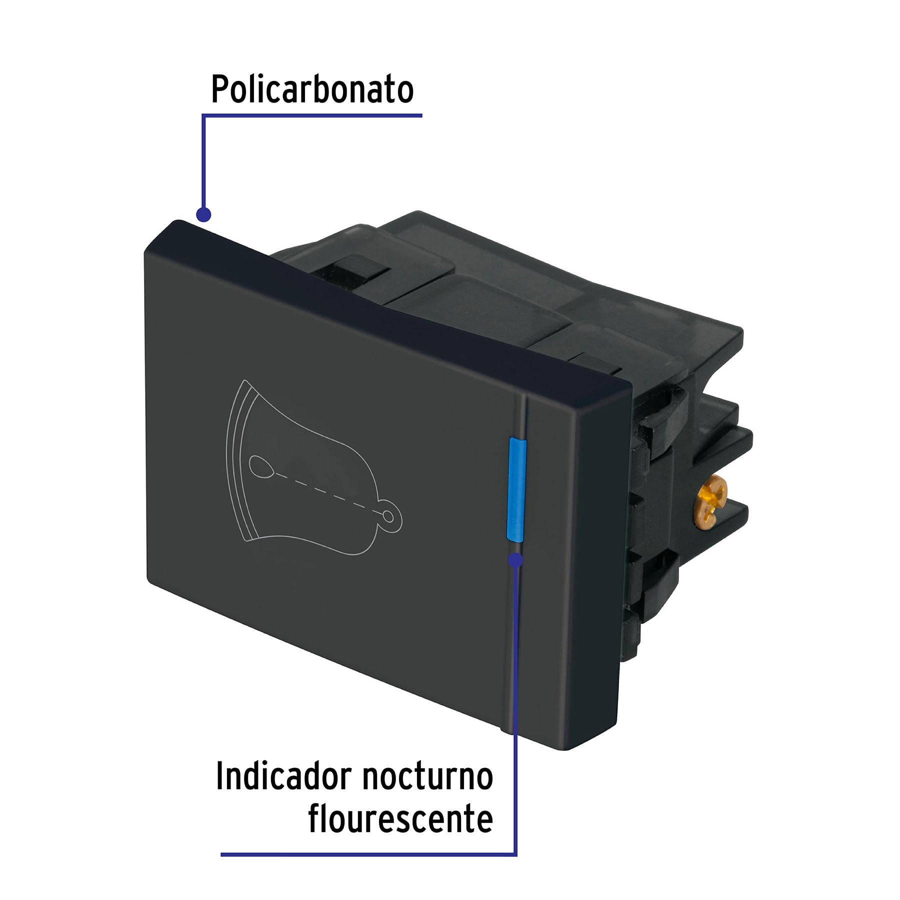 Interruptor para timbre, 1.5 módulos, línea Española, negro