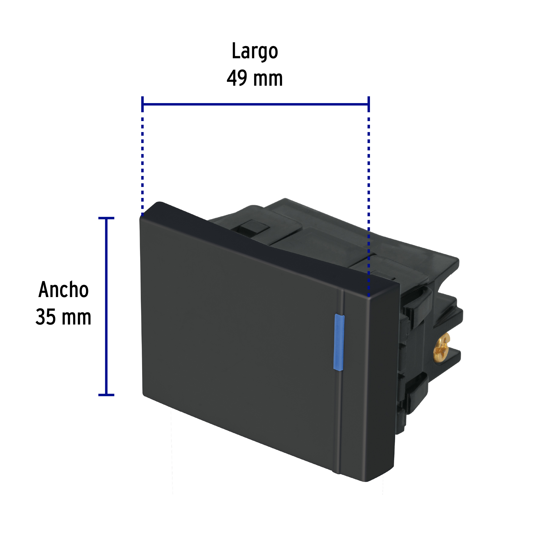Interruptor sencillo 1.5 módulos, línea Española,color negro
