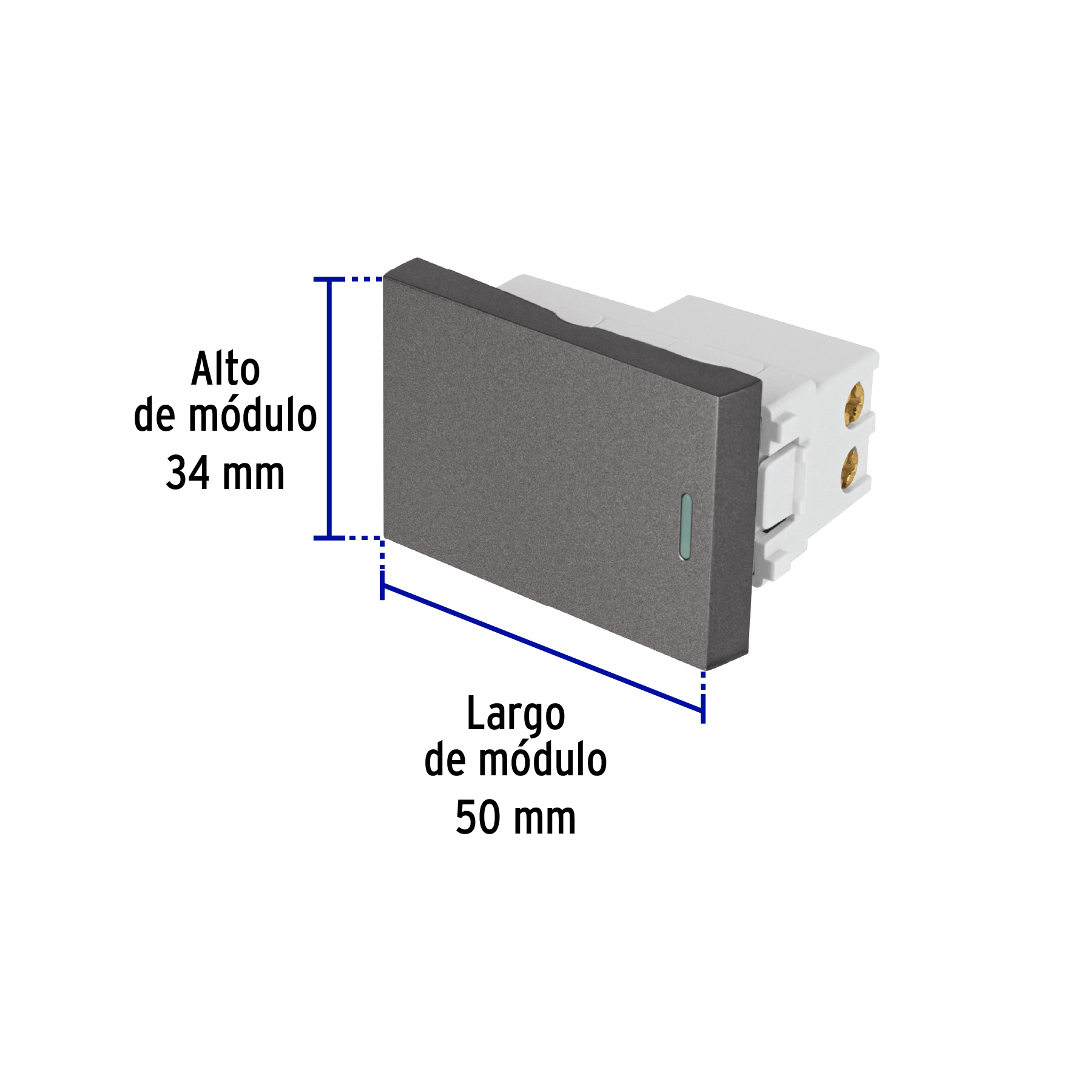 Interruptor sencillo acero inox de 1.5 módulos, línea Lisboa