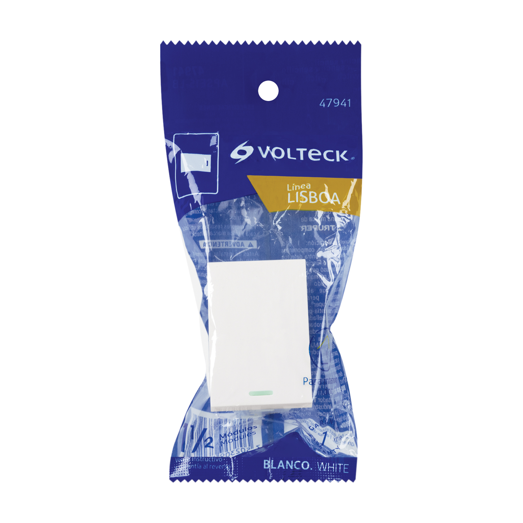 Interruptor sencillo blanco de 1.5 módulos, línea Lisboa