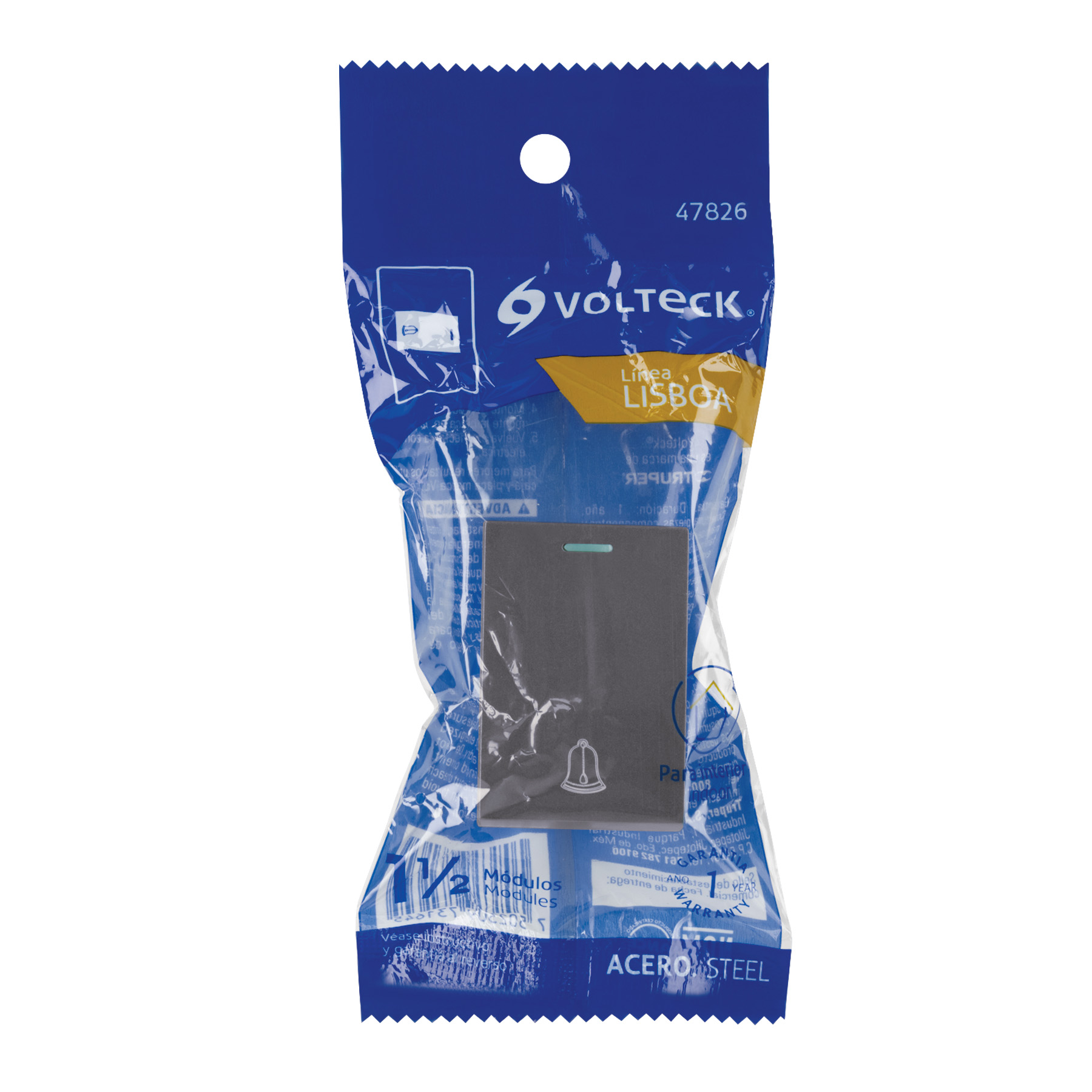Interruptor timbre acero inox de 1.5 módulos, línea Lisboa