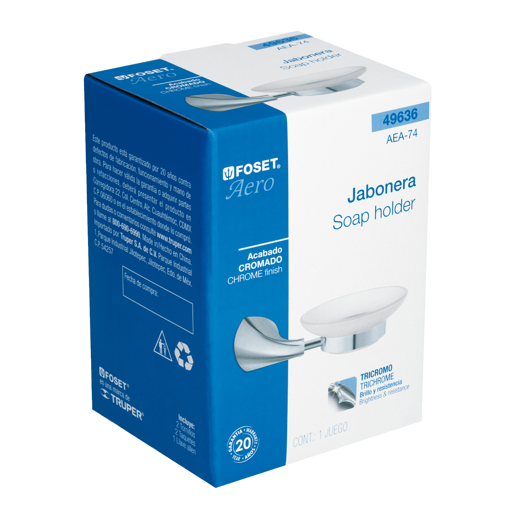 Jabonera metálica con plato de vidrio, Foset Aero