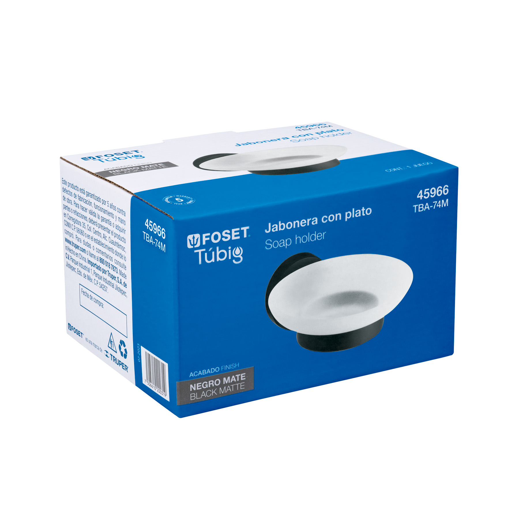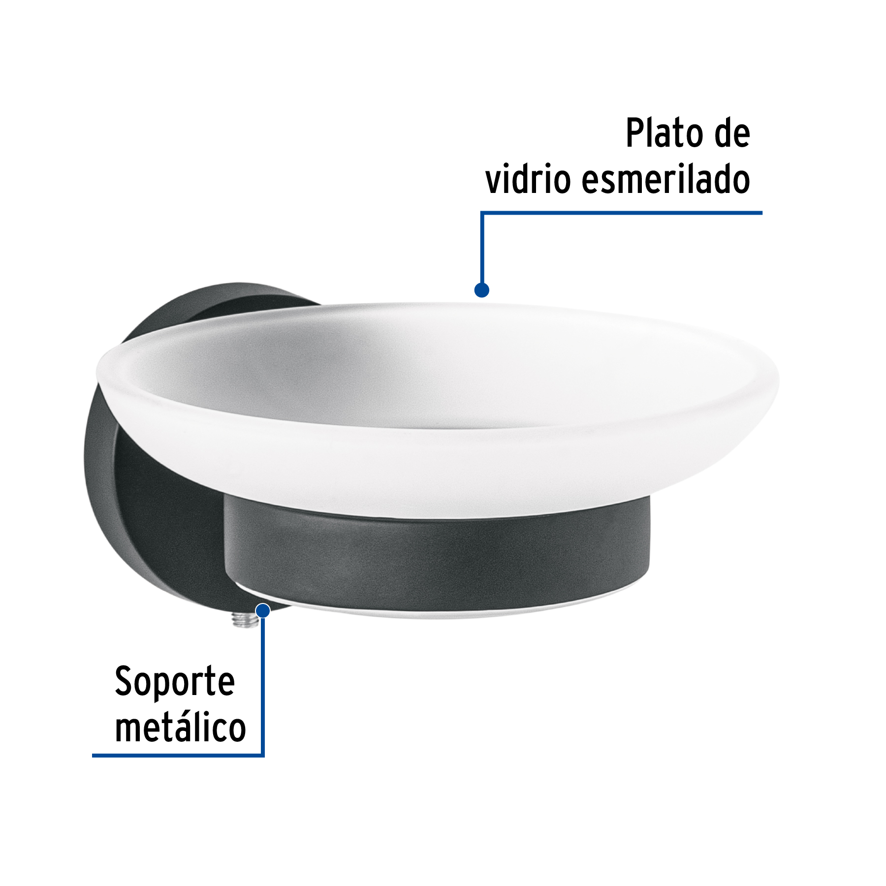 Jabonera metálica negro con plato de vidrio, Foset Túbig