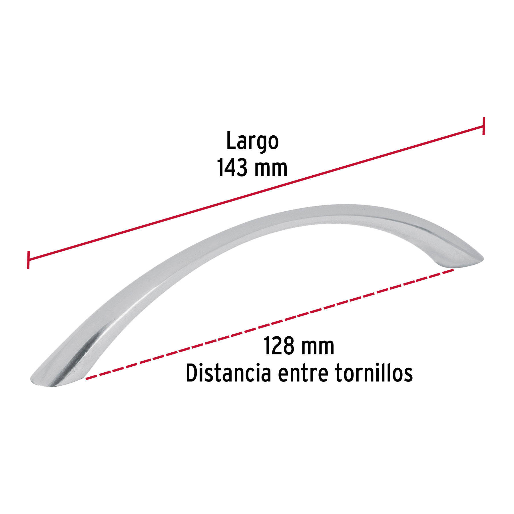 Jaladera de 128mm, línea Arco, níquel, HERMEX