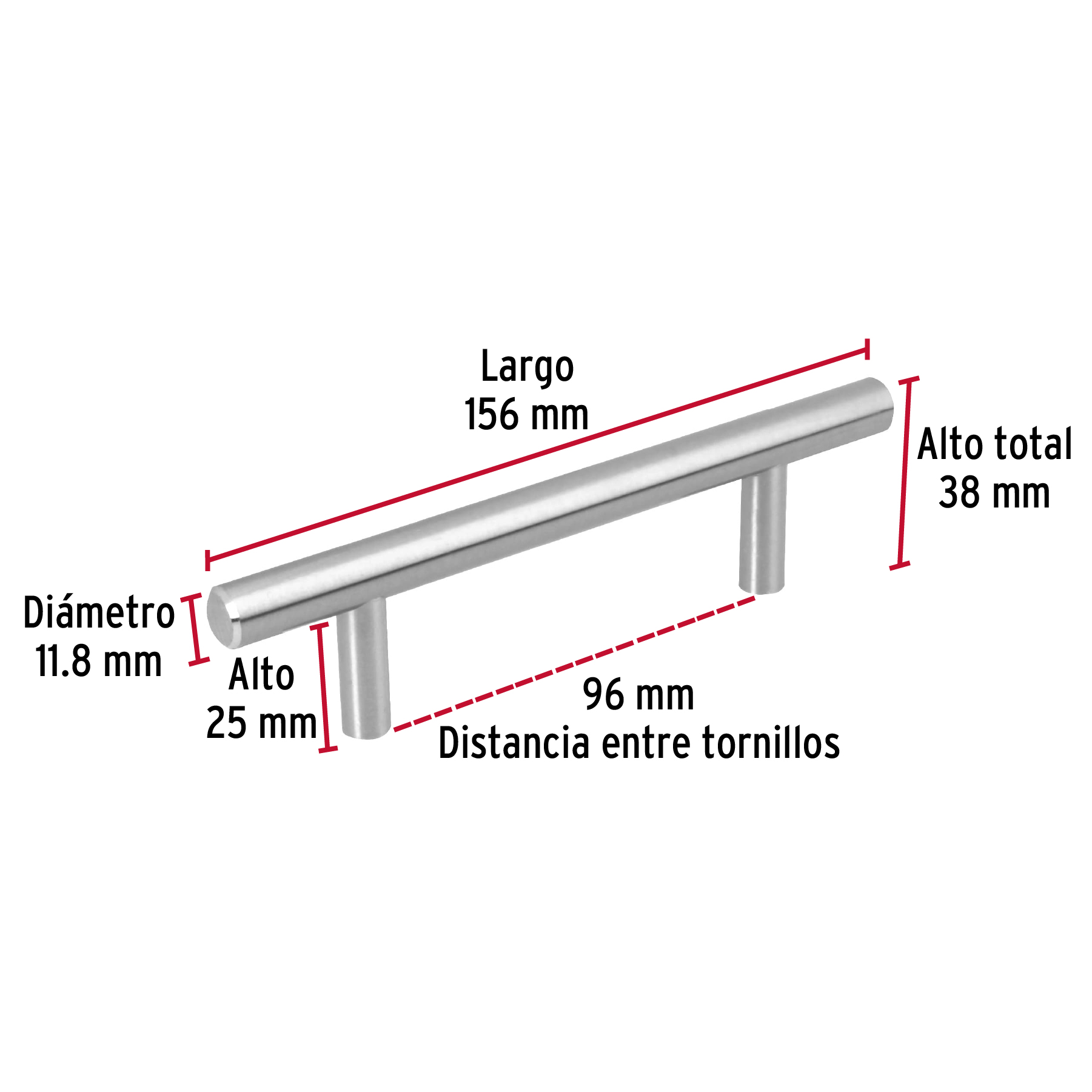 Jaladera de acero, 96mm, línea Cilindro, níquel, HERMEX