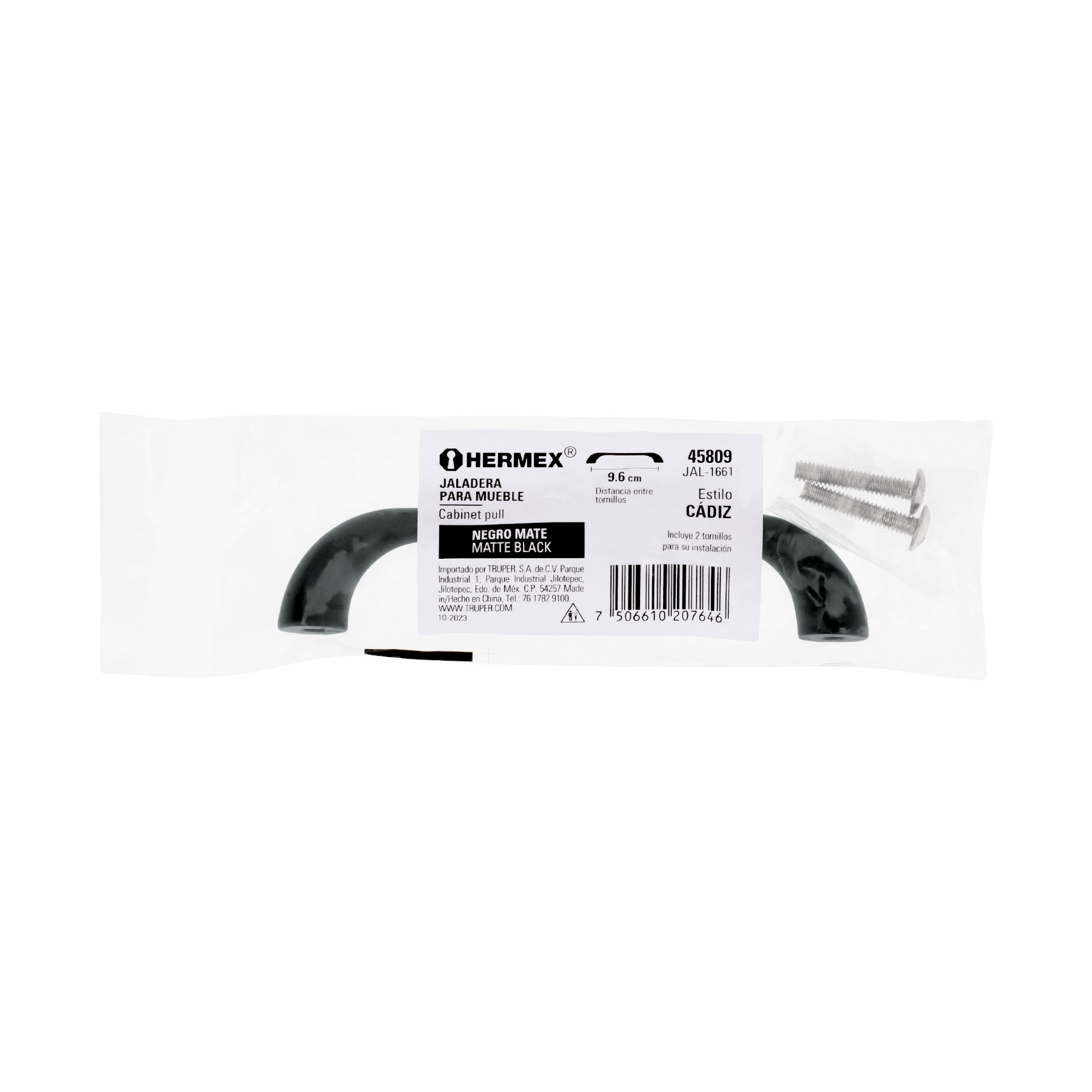 Jaladera de 96mm,, línea Cádiz, negro, HERMEX