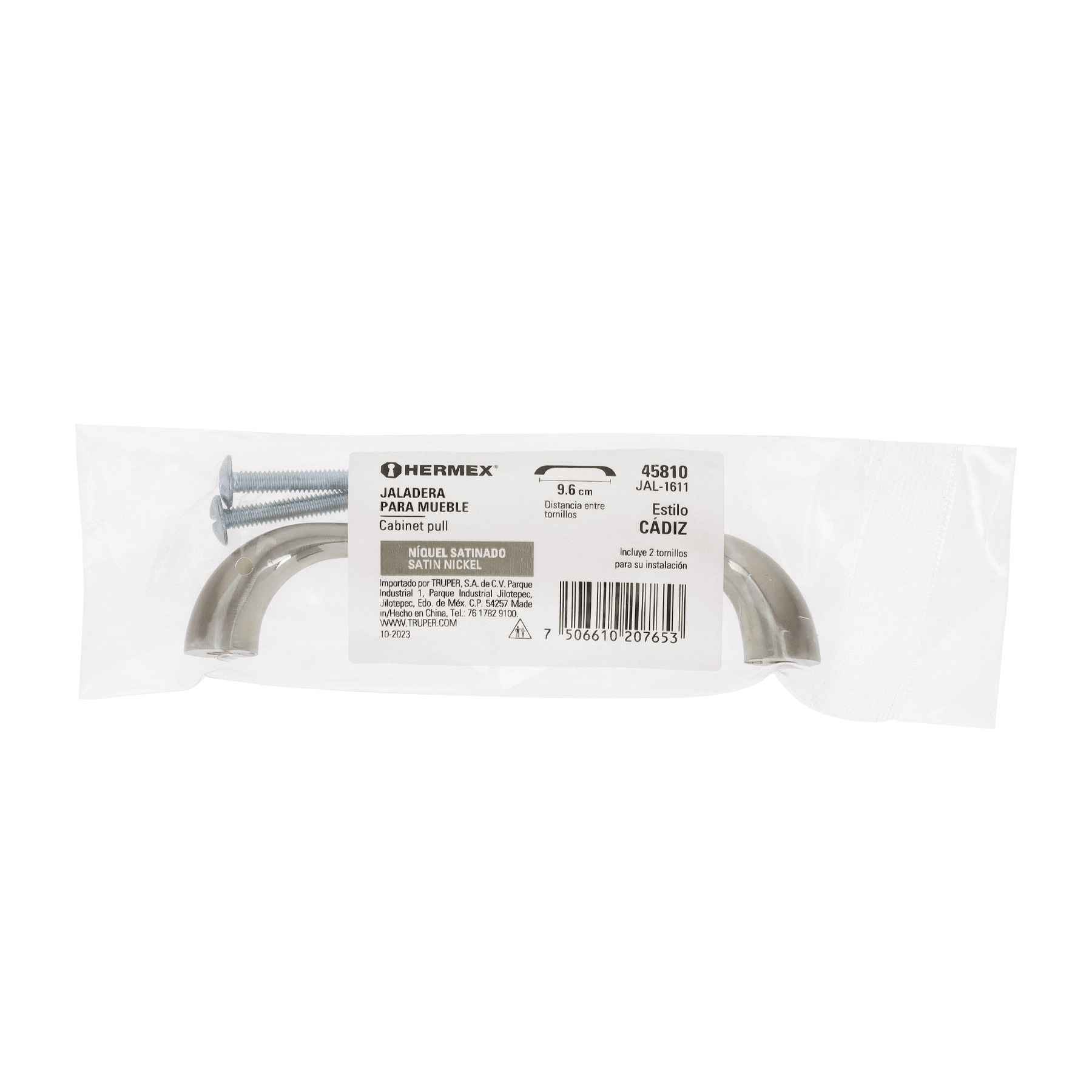 Jaladera de 96mm, línea Cádiz, níquel, HERMEX