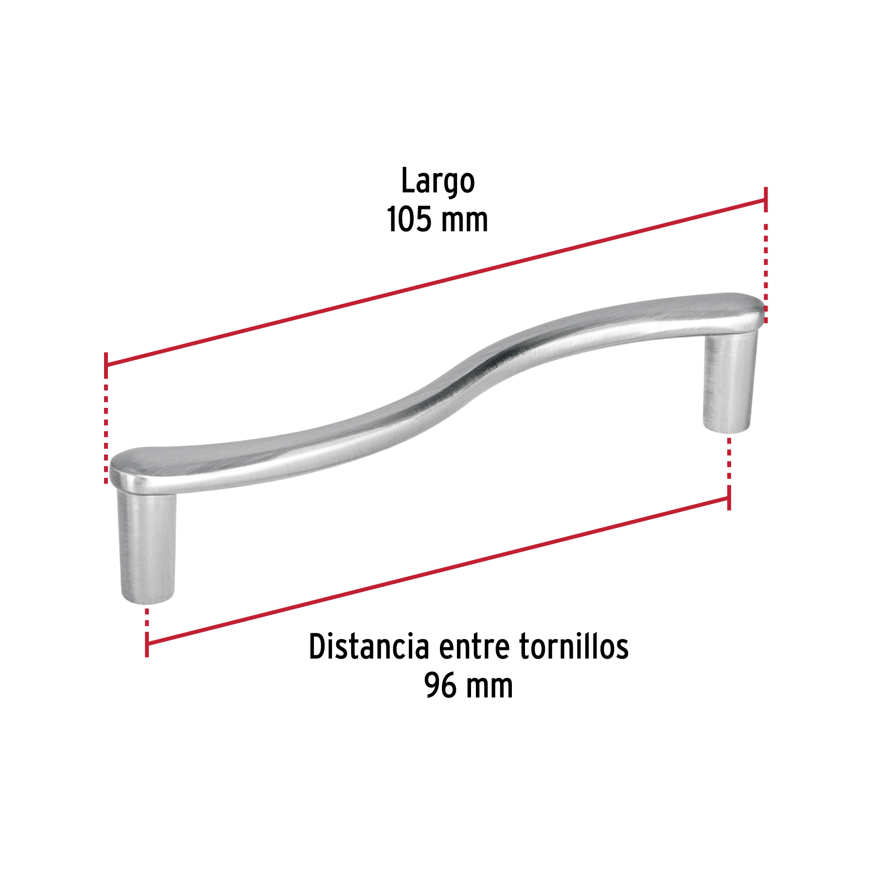 Jaladera de 96mm, línea Toledo, níquel, HERMEX