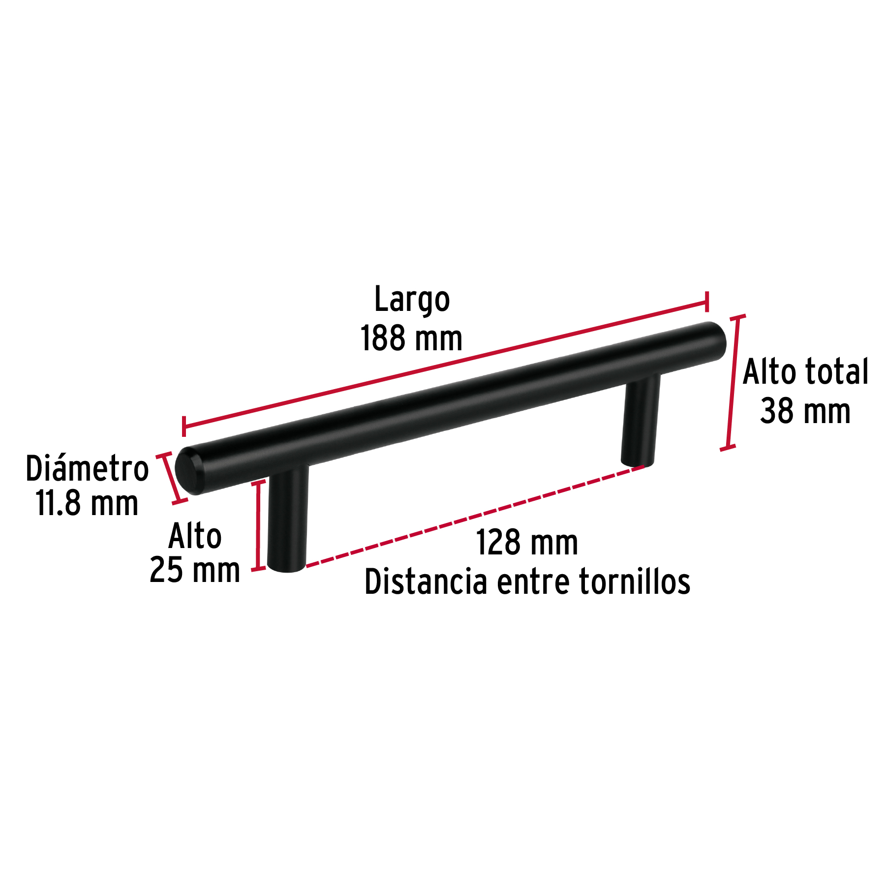 Jaladera de acero, 128mm, línea Cilindro, negro, HERMEX