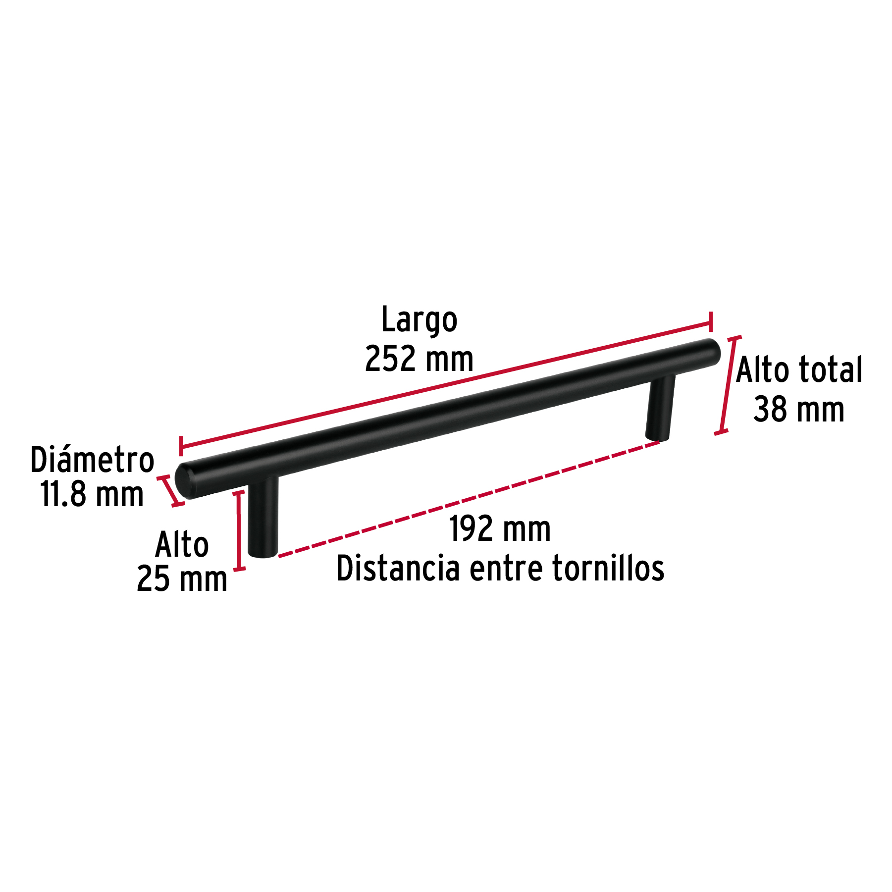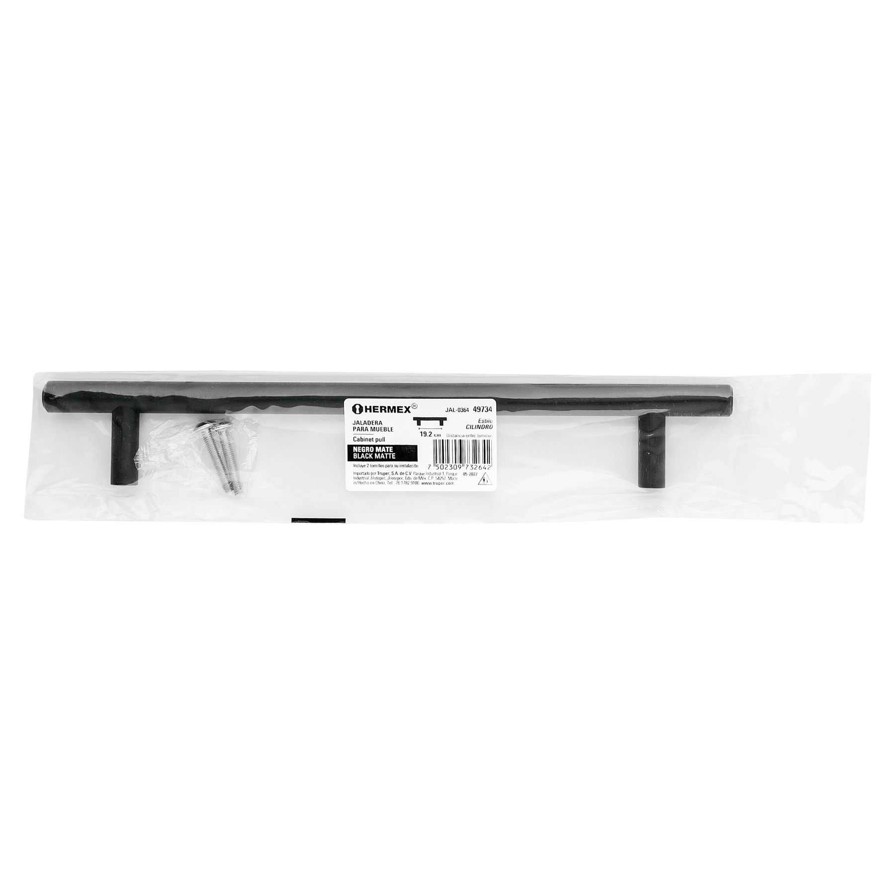 Jaladera de acero, 192mm, línea Cilindro, negro, HERMEX