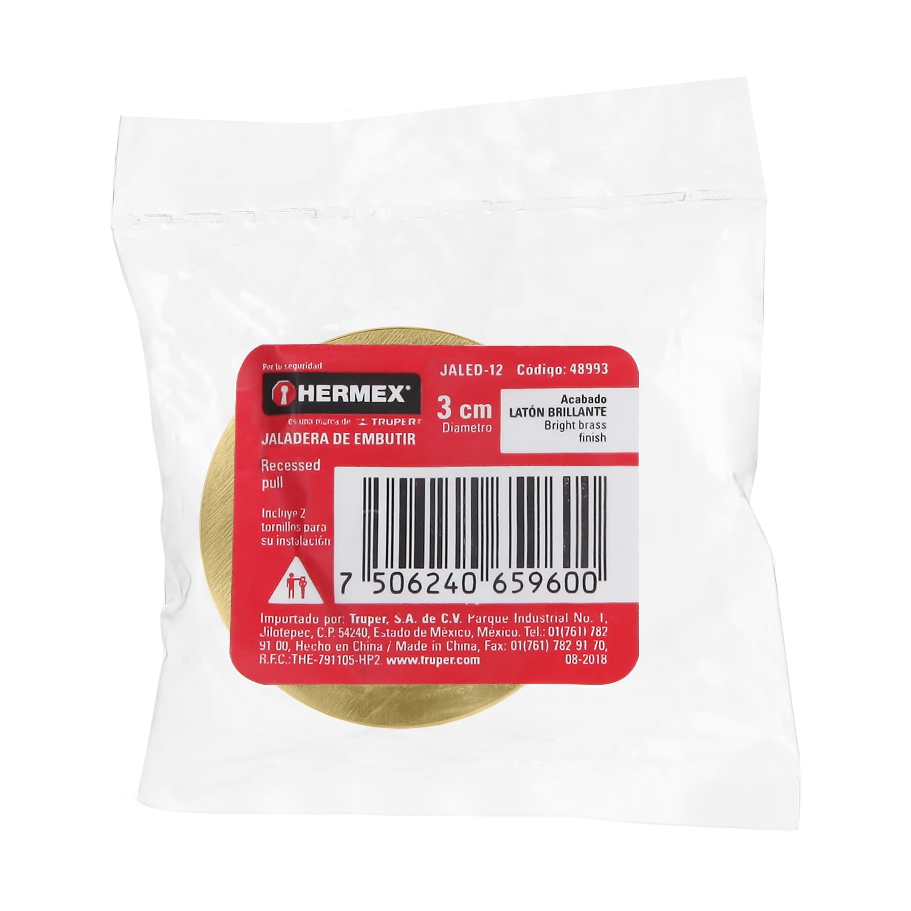 Jaladera de embutir circular No. 2 acabado latón brillante