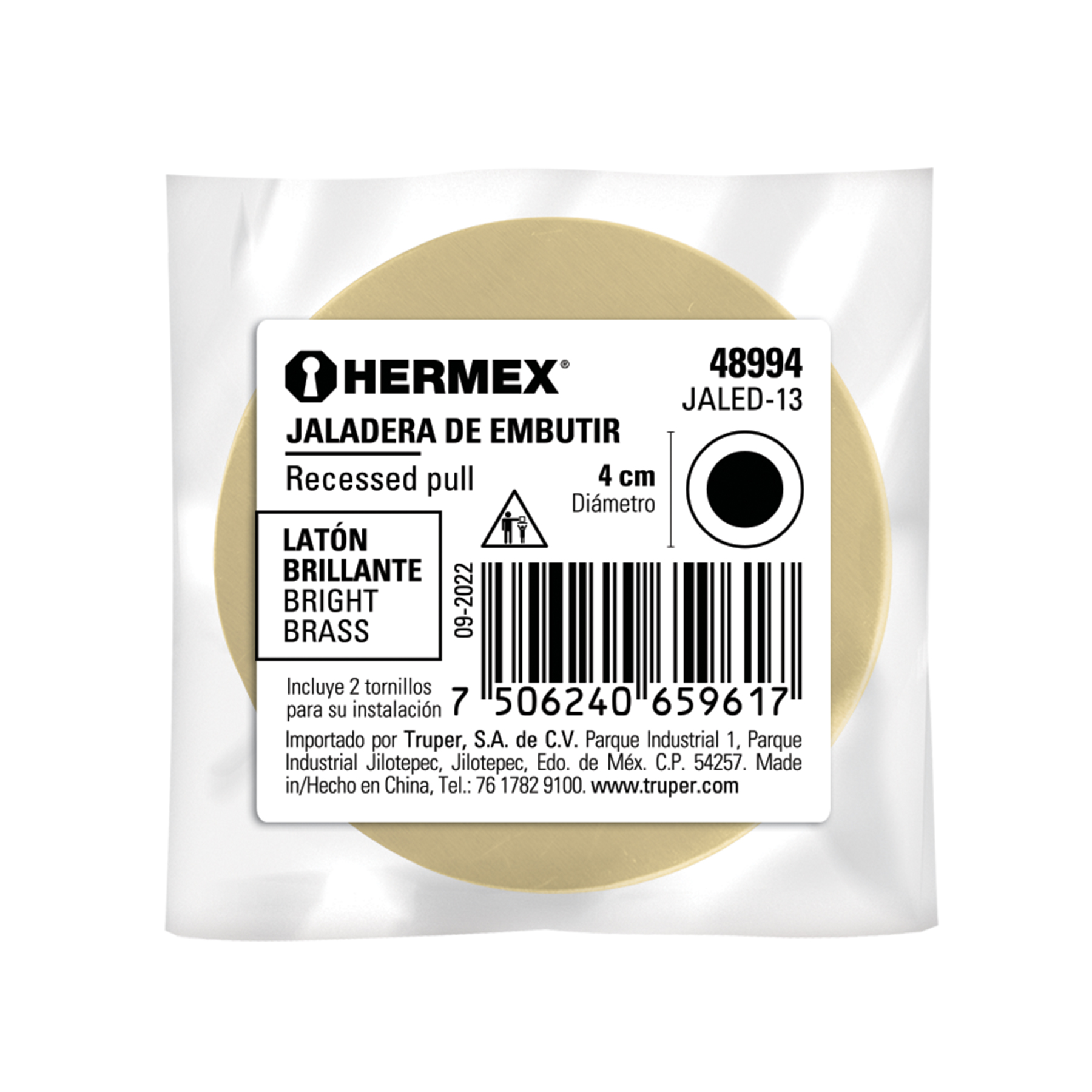 Jaladera de embutir circular No. 3 acabado latón brillante