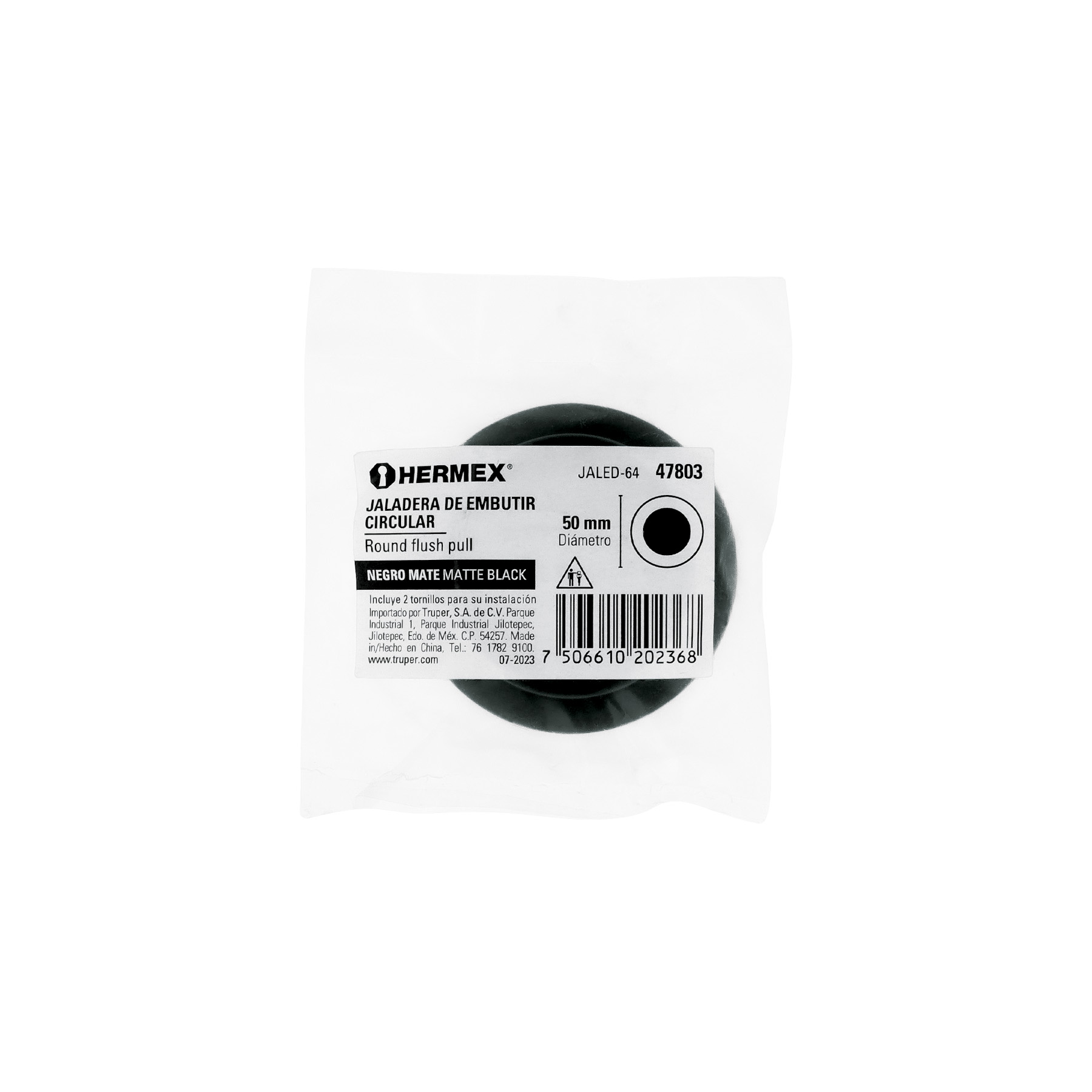 Jaladera de embutir circular No. 4 acabado negro