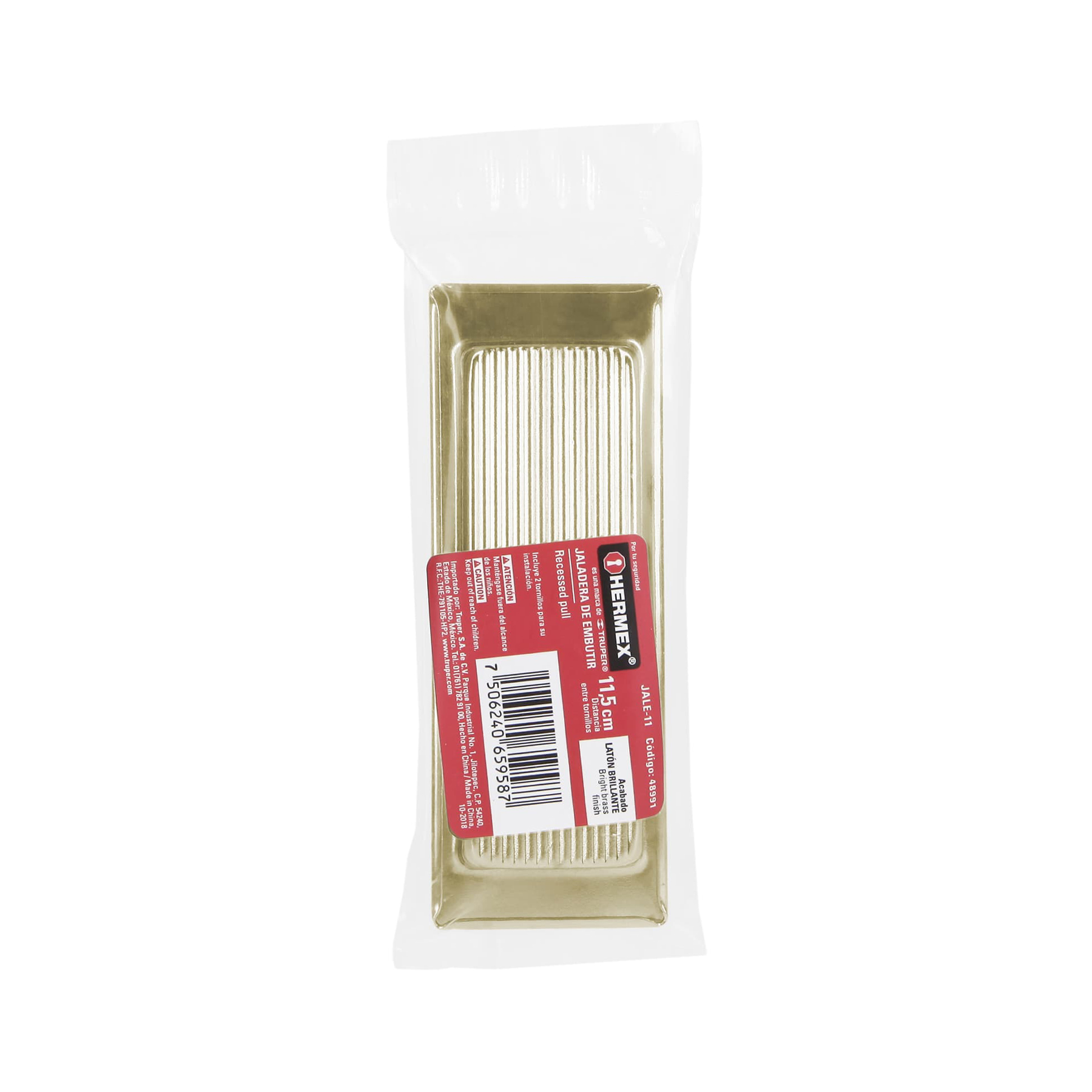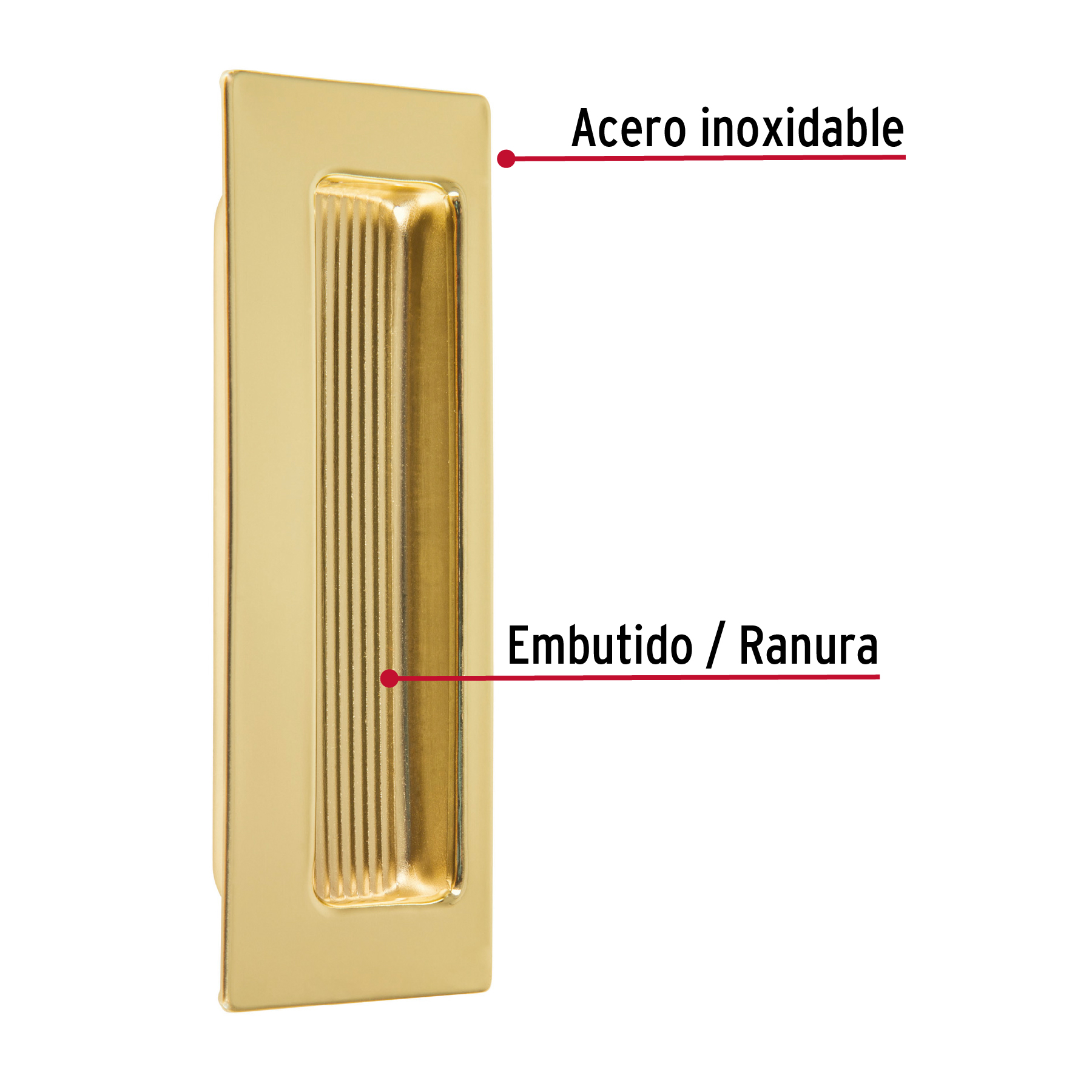 Jaladera de embutir cuadrada acabado latón brillante, HERMEX