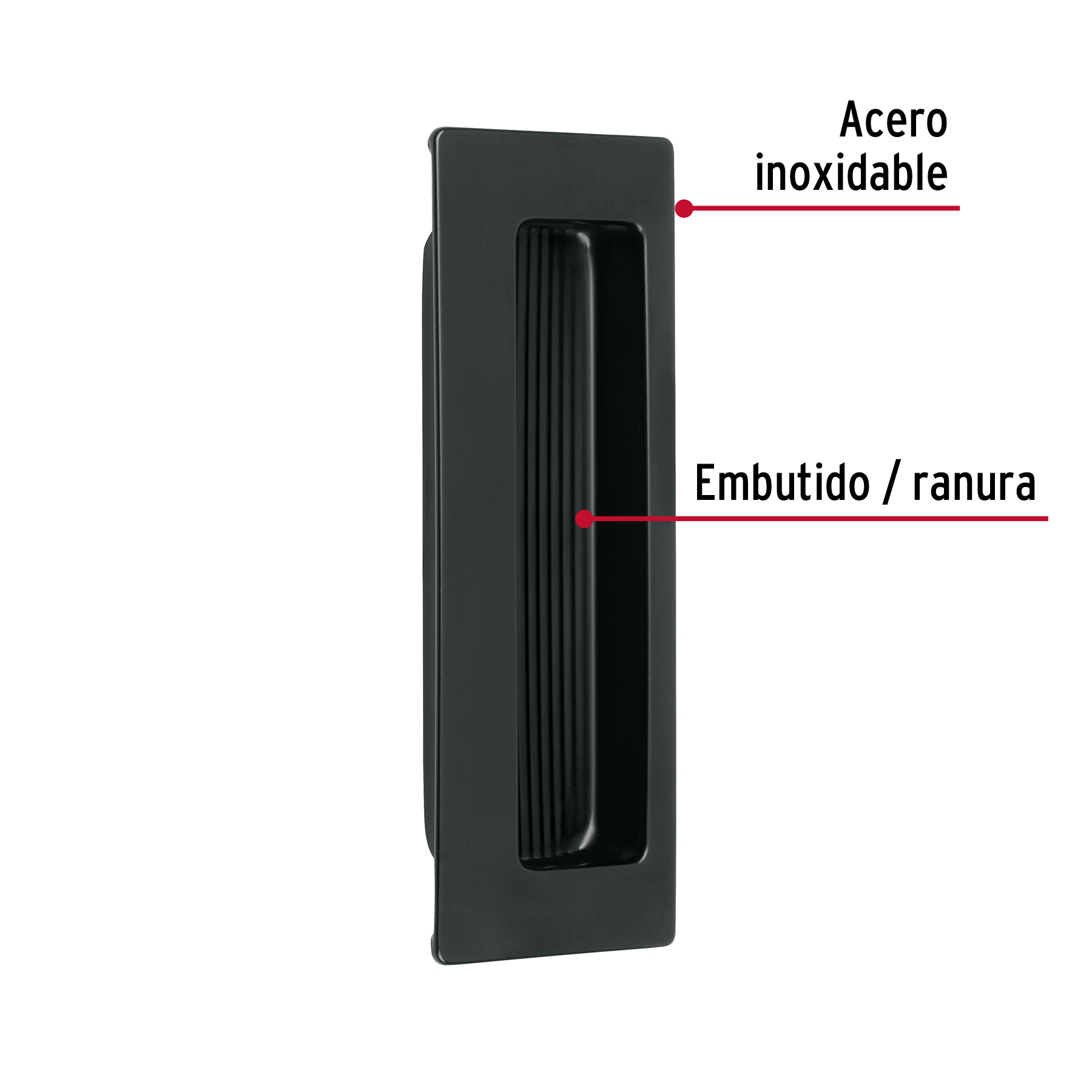 Jaladera de embutir cuadrada acabado negro, HERMEX