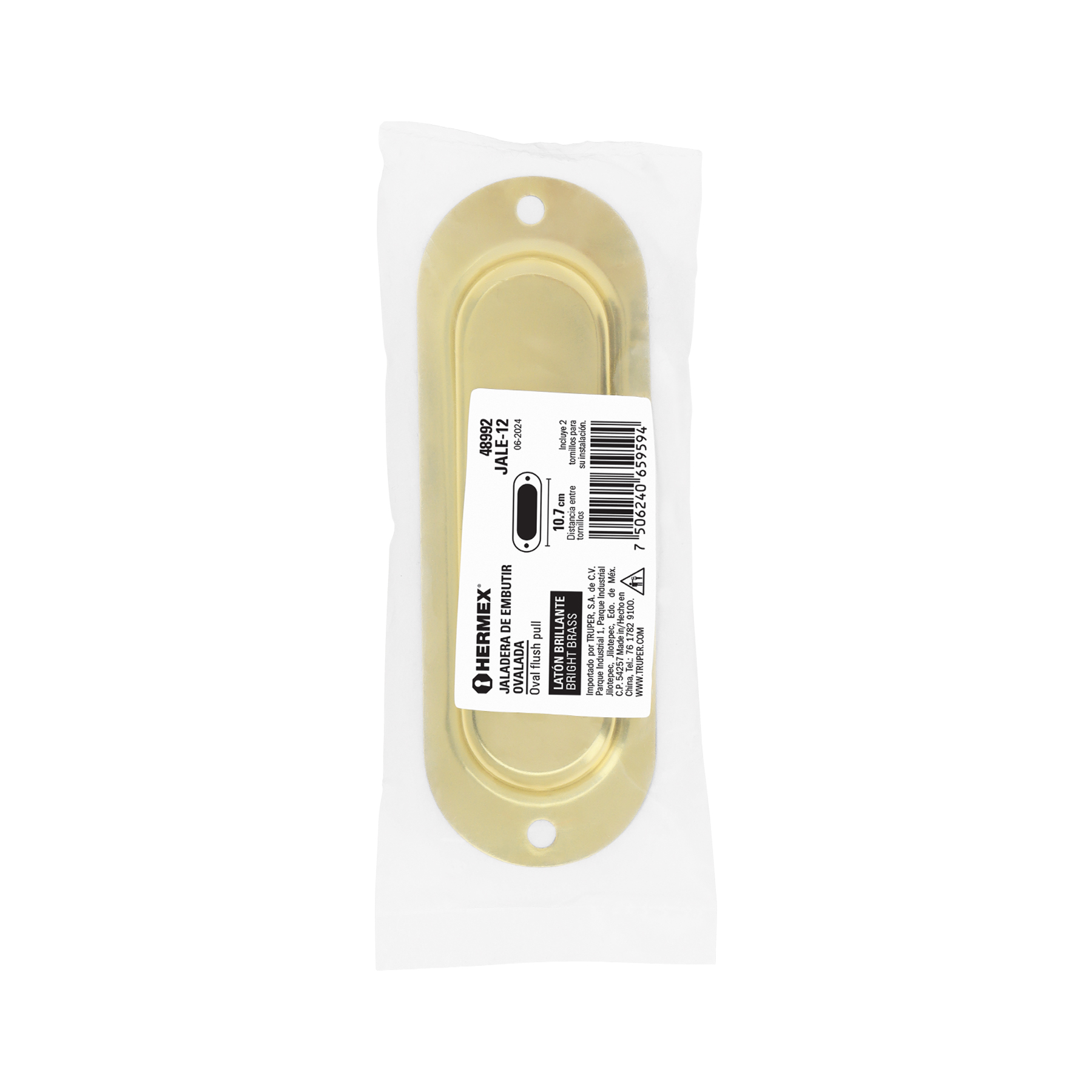 Jaladera de embutir ovalada acabado latón brillante, HERMEX