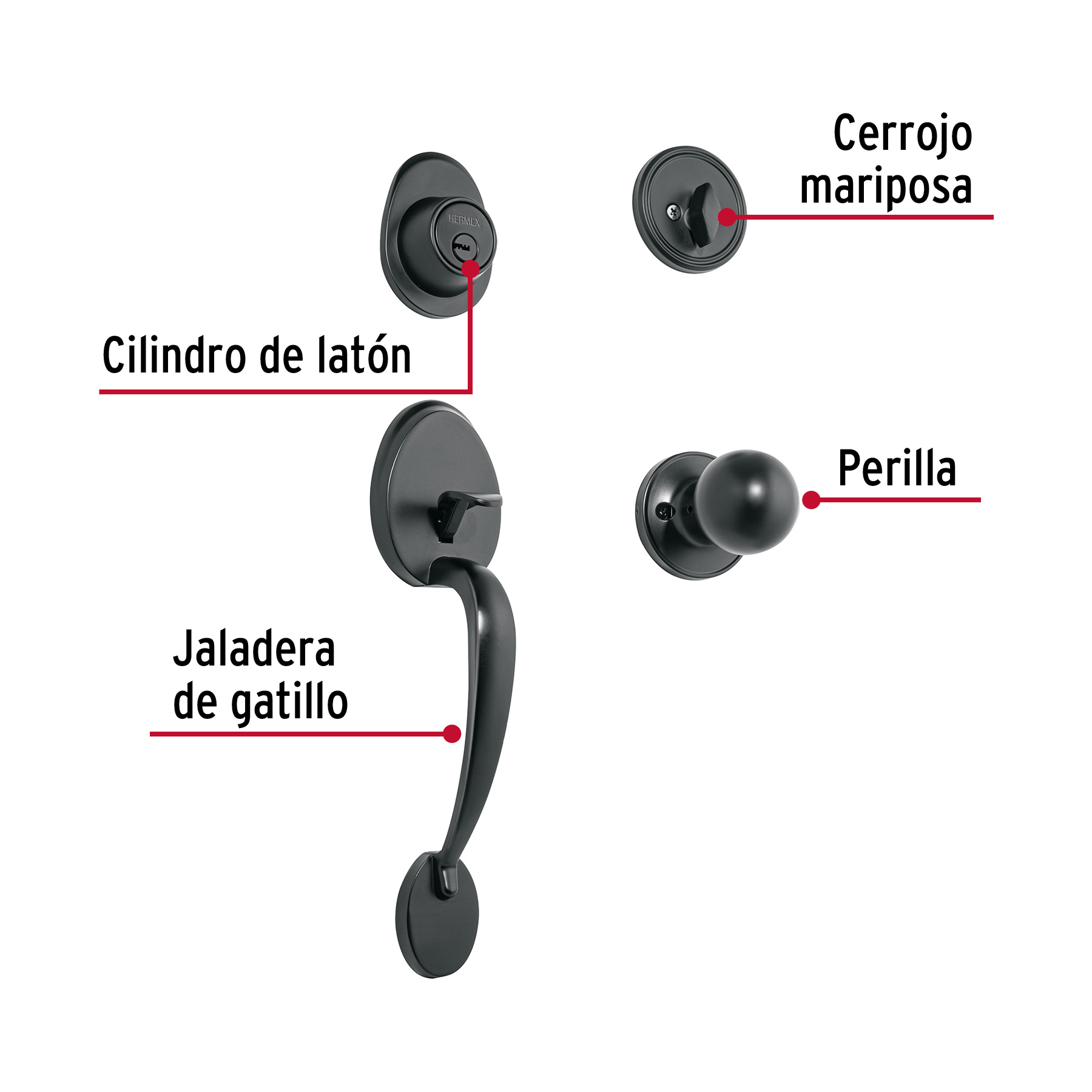 Jaladera y perilla, Lugo llave-mariposa, negro, HERMEX