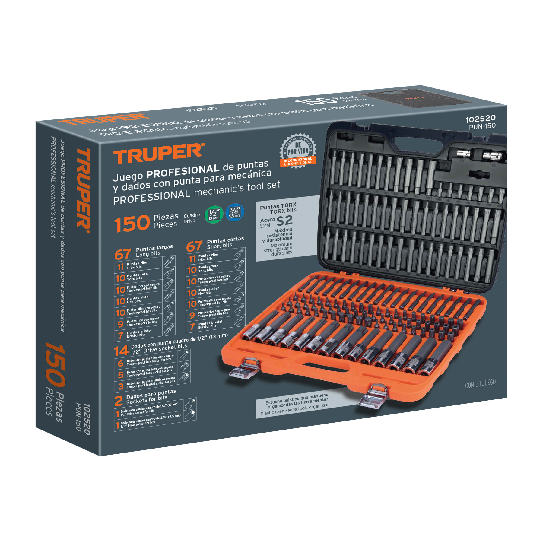 Jgo profesional de puntas y dados con punta p/mécanica 150pz