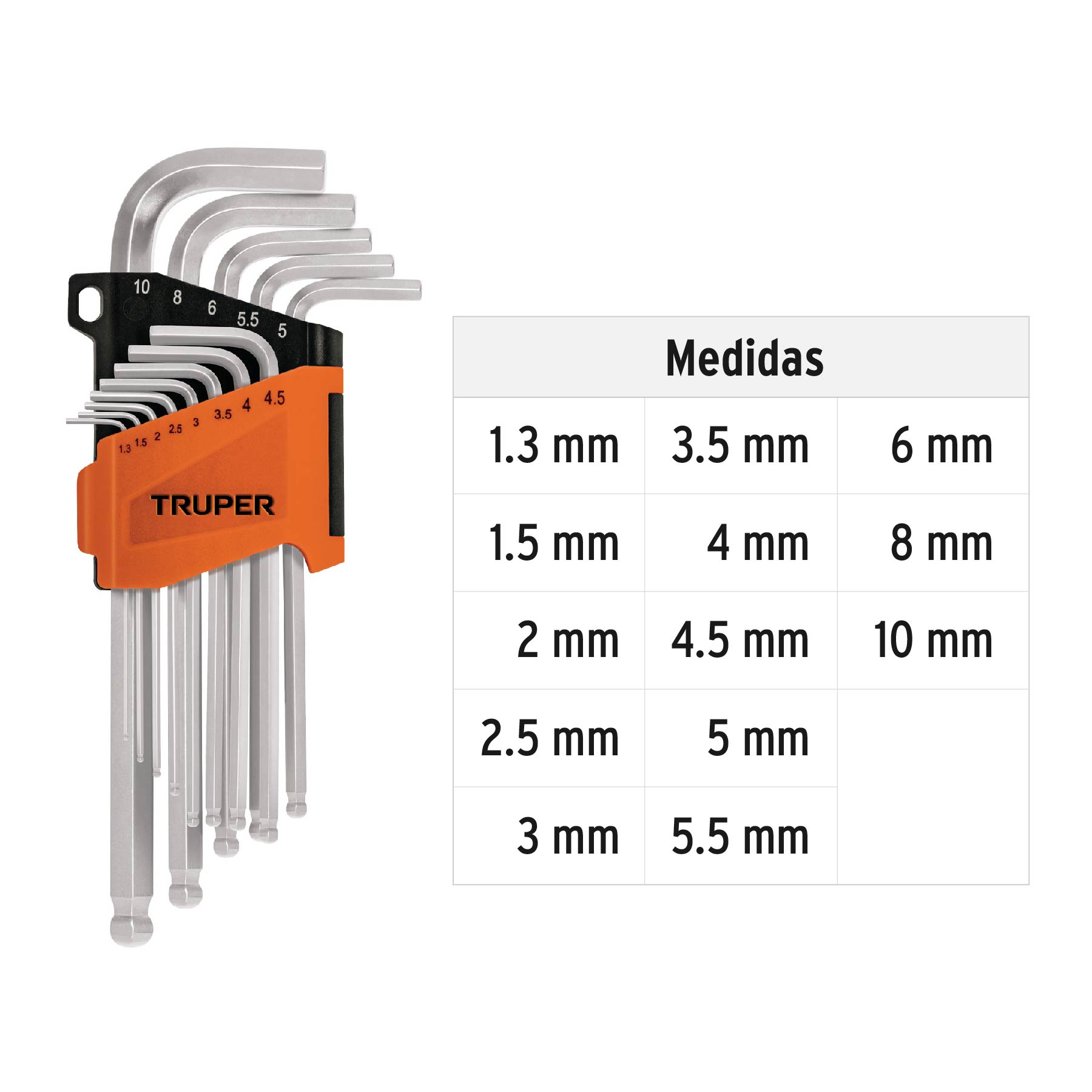 Juego 13 llaves allen largas mm punta bola con organizador