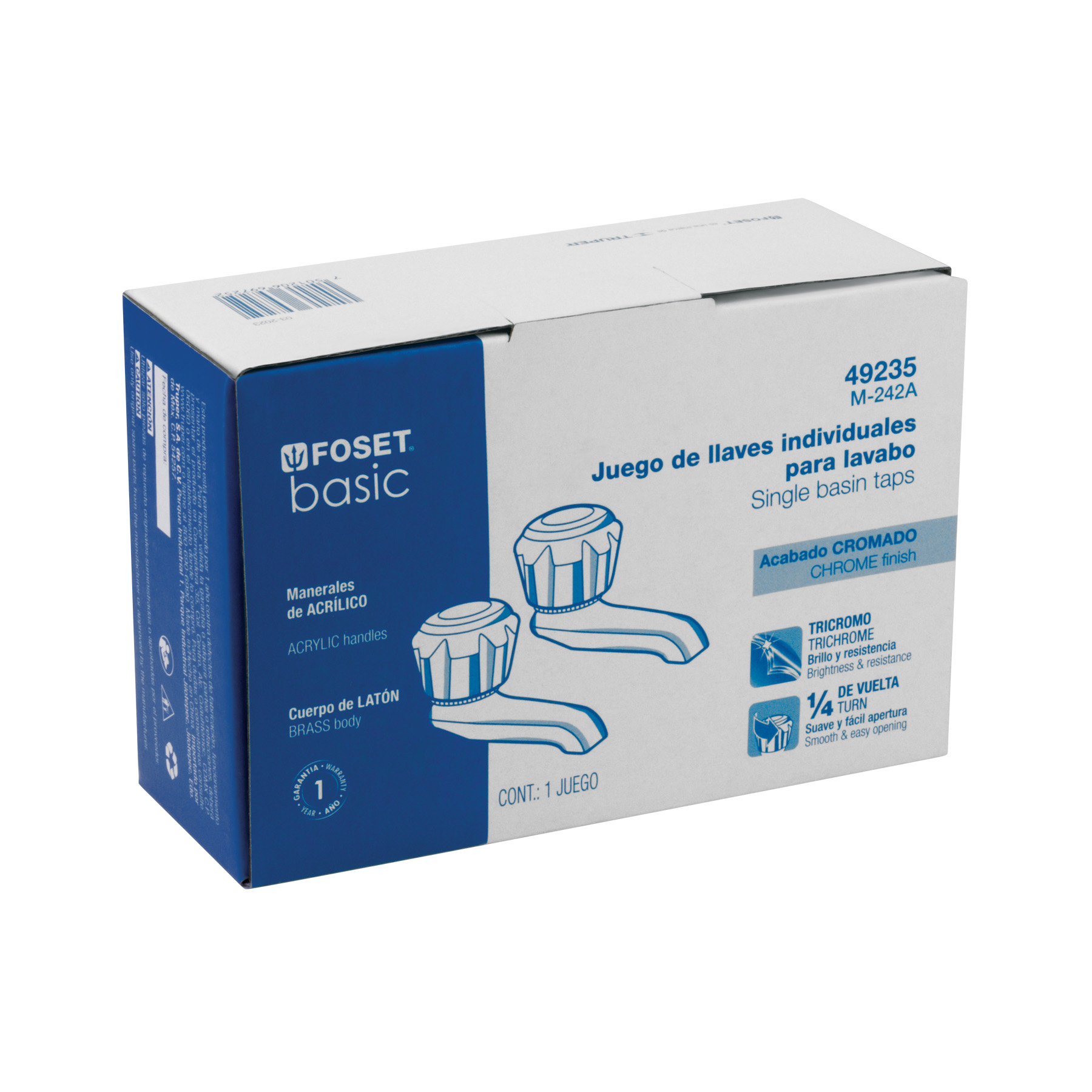 Juego 2 llaves individuales para lavabo, manerales acrílico