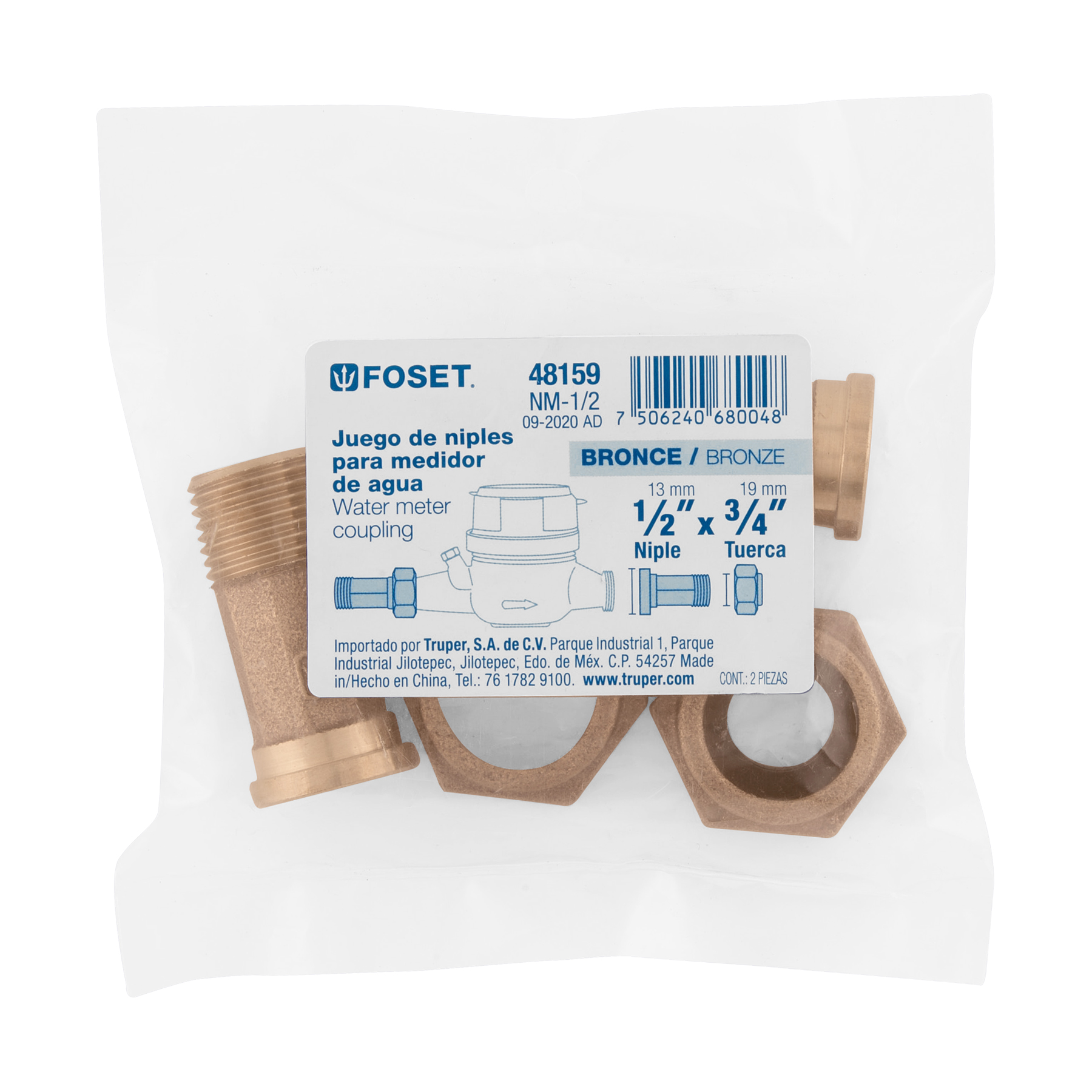 Juego de 2 niples para medidor de agua, 1/2 x 3/4′, FOSET